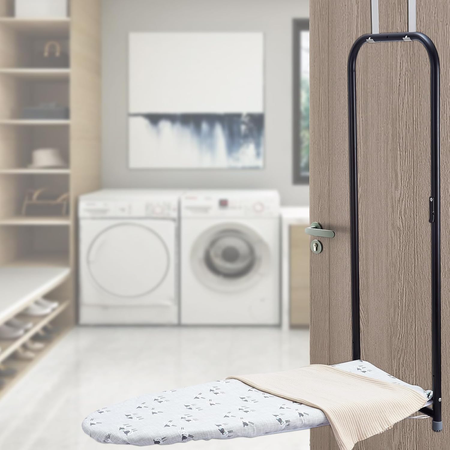 Over The Door Ironing Board Cover 13 x 37 inch, Small Iron Board Cover w 3 Layers Heat Reflective Thick Padding with Hook and Loop Fasteners (Gray Sheep)