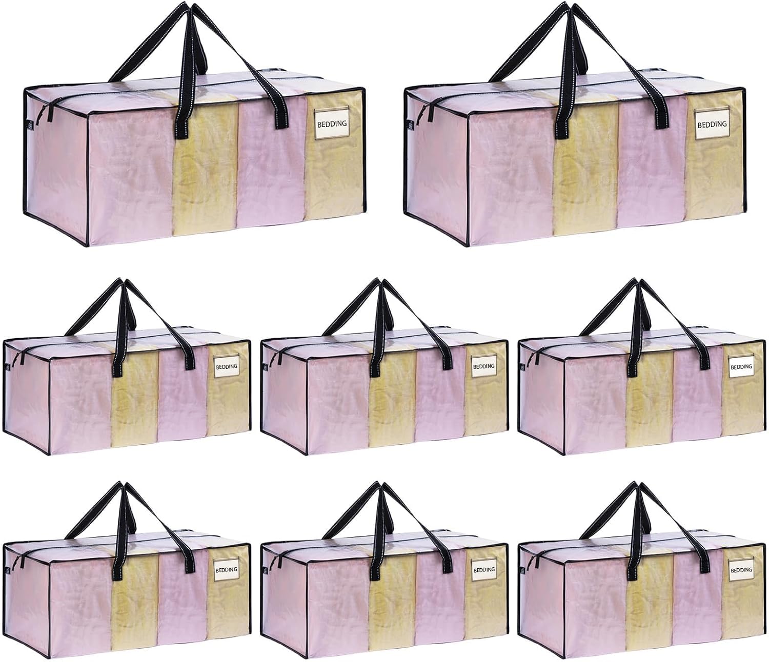 VENO 8 Pack Moving Bags Extra Large Storage Bags for College Move-In, Heavy-Duty Storage Totes, Packing Boxes, and Wardrobe Moving Supplies - Durable Laundry Bags for Clothes (Clear, 8 Pack)