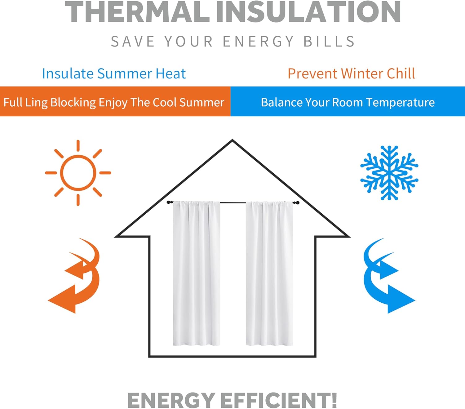 - ENERGY SMART - Curtains are work well on balance the temperature inside and outside by insulating summer heat and winter chill, so that these room darkening curtains can reduce the energy waste and save the daily bill effectively.