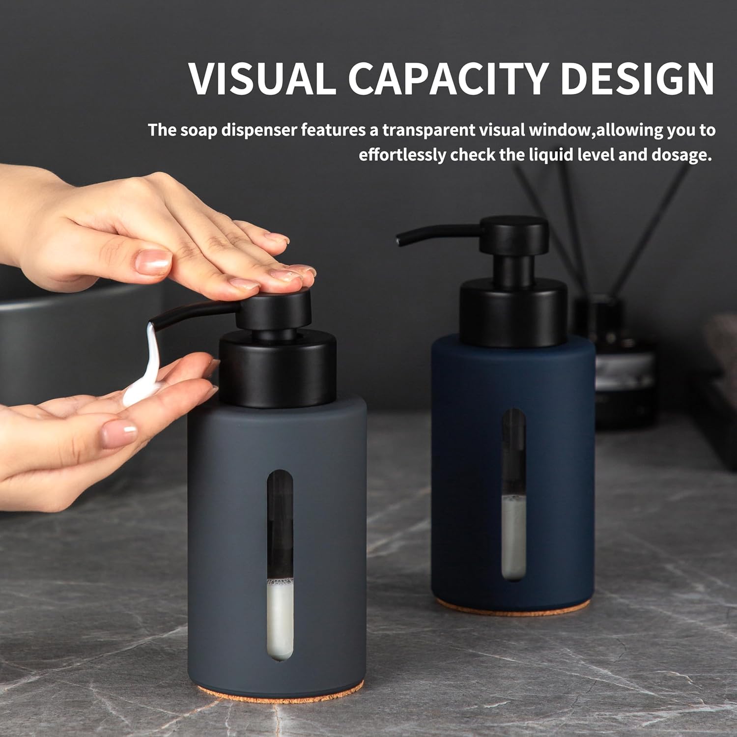 - Visual Capacity Design-Our grey soap dispenser boasts a transparent window for easy liquid level and dosage monitoring. The rubber-coated surface ensures a sleek, high-quality, and non-slip texture.