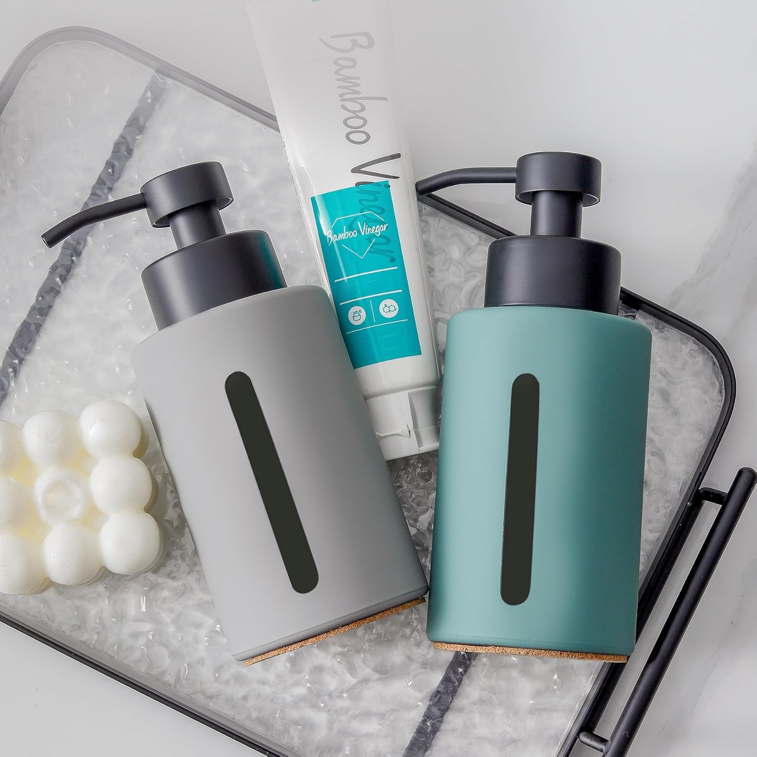 - Visual Capacity Design-Our foaming soap glass dispenser boasts a transparent window for easy liquid level and dosage monitoring. The rubber-coated surface ensures a sleek, high-quality, and non-slip texture.