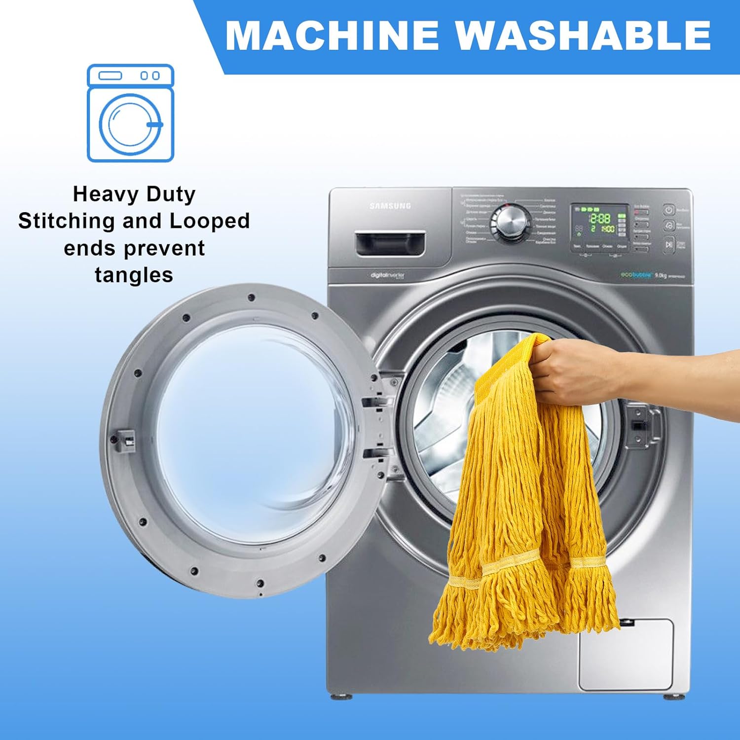 - Durability: Crafted from soft materials, this commercial mop head exhibits excellent durability and a long lifespan. It withstands frequent use and heavy pressure, maintaining optimal performance over time