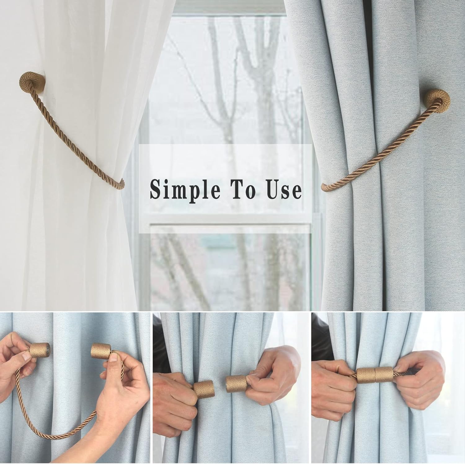 - Simple To Use- Holdback your curtain in seconds with a magnet, You only need to open the magnetic curtain holder and buckle the curtains to achieve the function of fixing the curtains. A better choice to tie back your curtains! Simply tie on anywhere when not in use. Our products do not need to use hooks, Will not damage your walls.