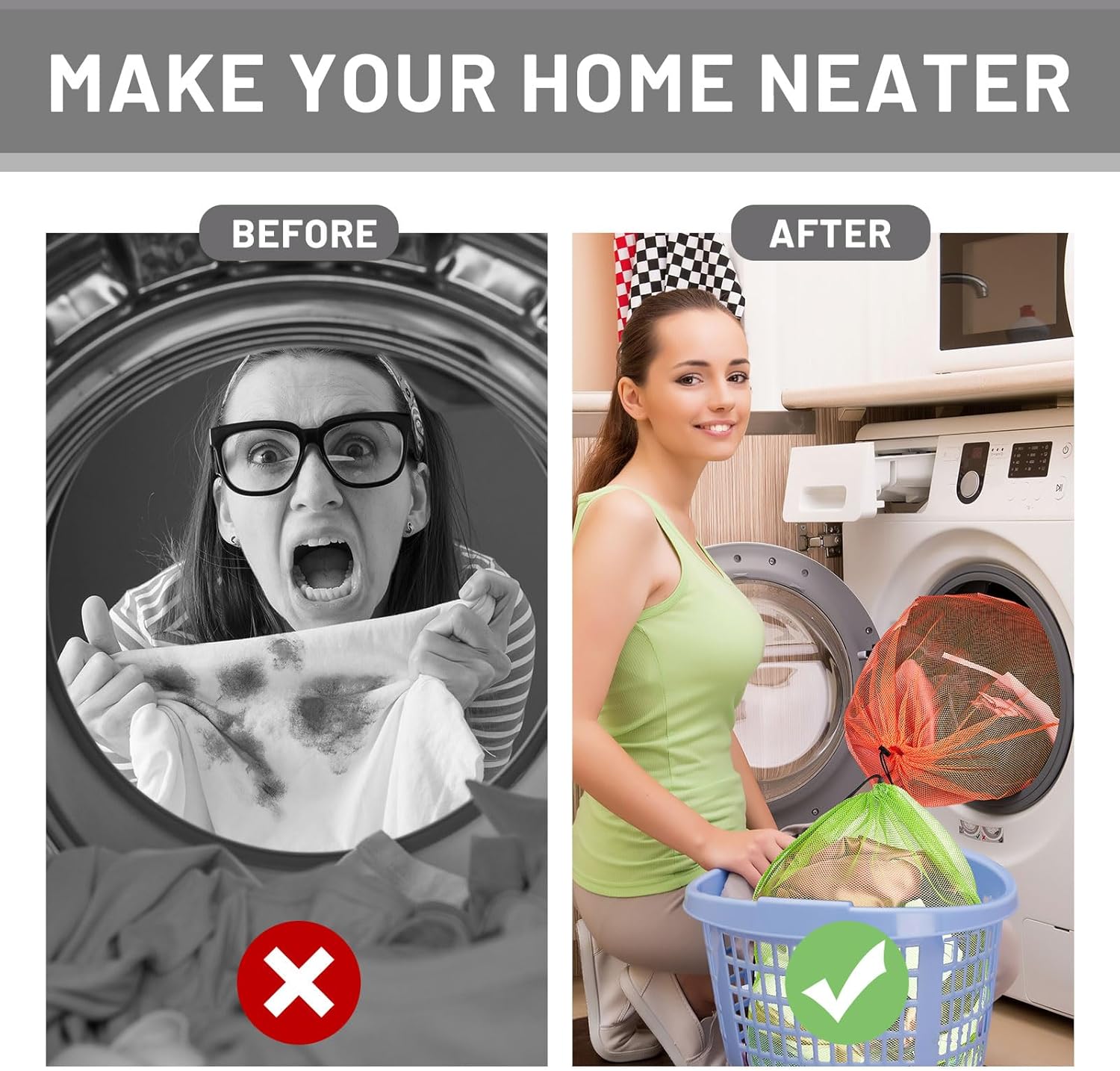 - Color Design and Quantity: you will receive 12 mesh heavy duty laundry bag in 6 bright colors (black, red, yellow, green, orange, blue), 2 of each color; This combination provides a wide range of usage options and is convenient for sorting, you can sort clothes by different colors; The mesh is convenient for breathability to avoid odors