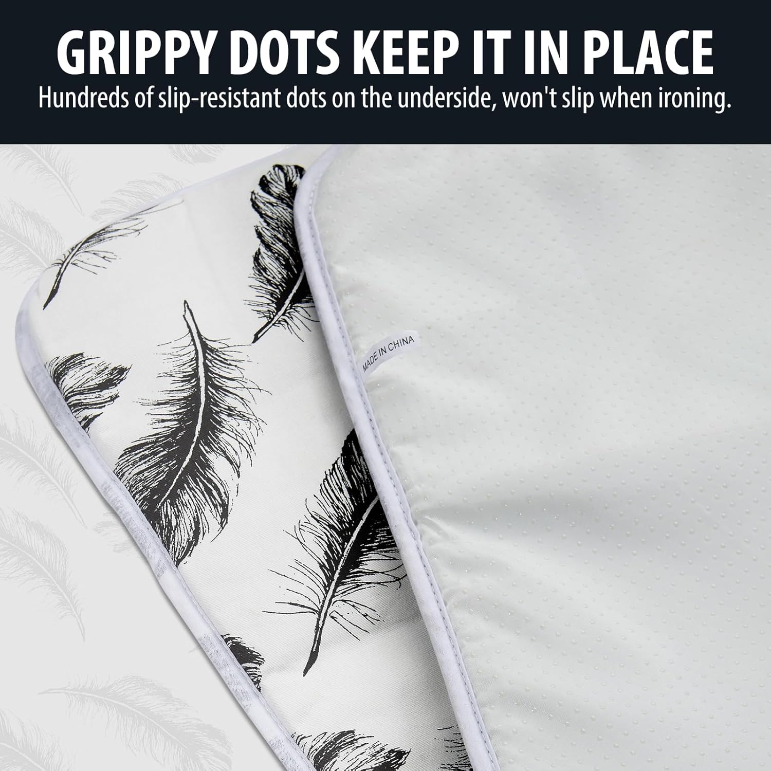 Seiritex Ironing Mat, Portable Ironing Pad 39.4 x 18.9 inch Table Top Iron Board 5 in 1 Travel Iron Blanket for Washer, Dryer, Counter top, Black Feather