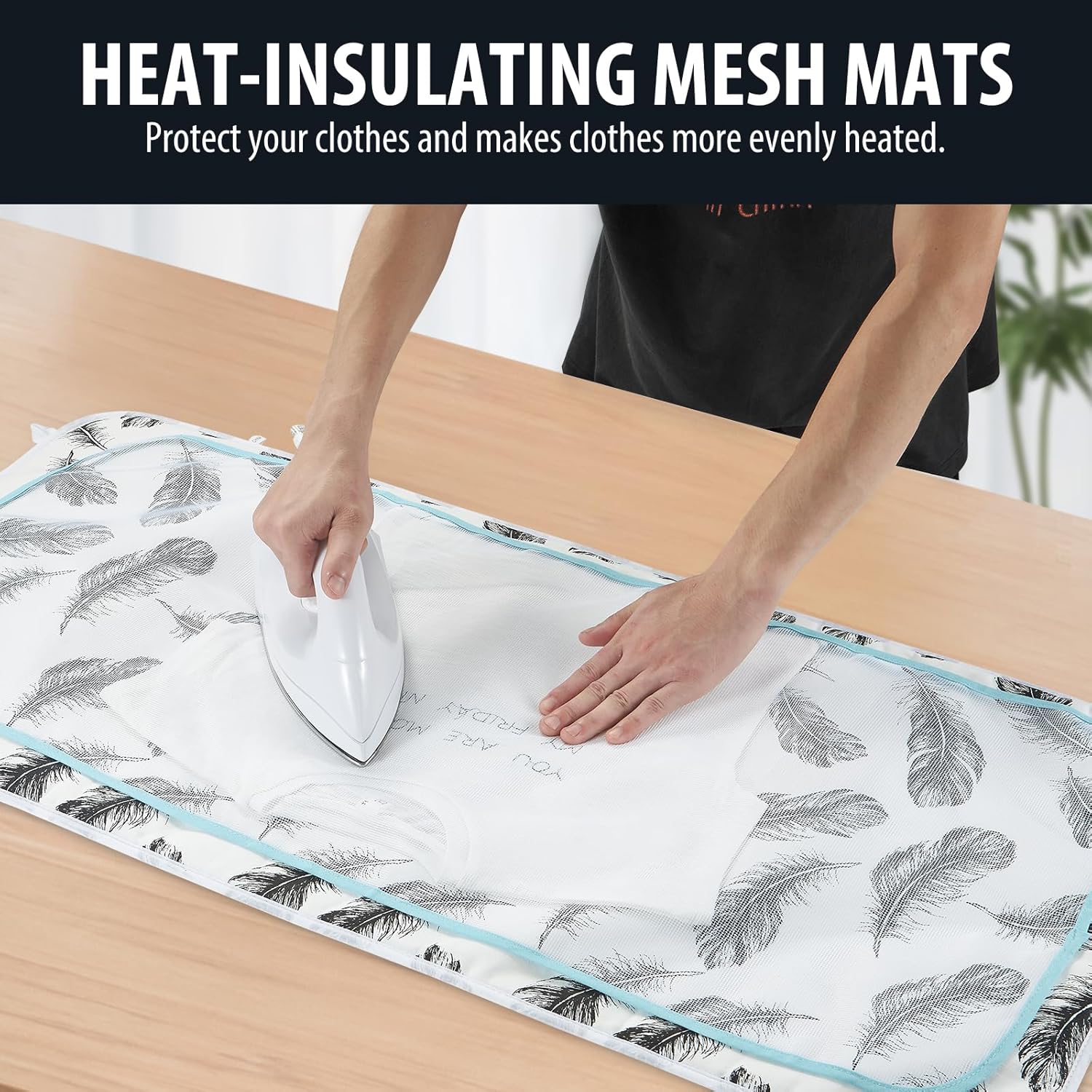 - INSULATION PROTECTIVE MESH: This table top ironing mat comes with a heat insulating and breathable net, meticulous and uniform mesh density makes clothes more evenly heated during ironing, effectively protects your clothes, especially dark clothes and expensive clothes