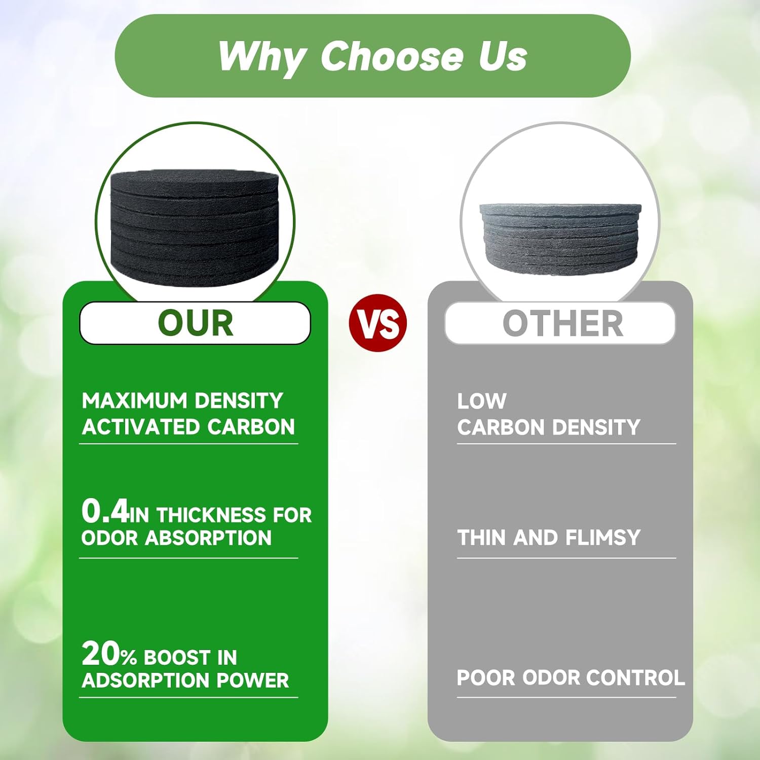 - 【Usage Recommendation】: It is advised to replace these charcoal compost filters every 6-8 weeks. Packaged in a resealable bag, activated charcoal retains its effectiveness over time. Note: The filters are non-washable and are designed for single-use