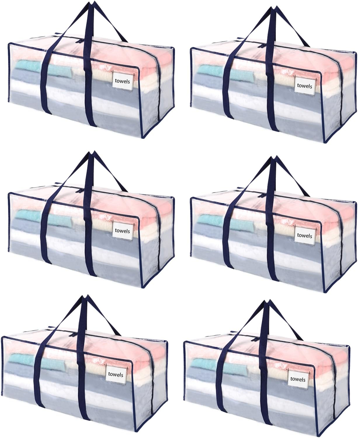 VENO 6 Pack Moving Bags Plastic Storage Totes Clothes Organization Large W Lid/Zipper. Packing Boxes/Bins Alternative. Space Saving Foldable College Supplies Essentials (Clear, 6 Pack)