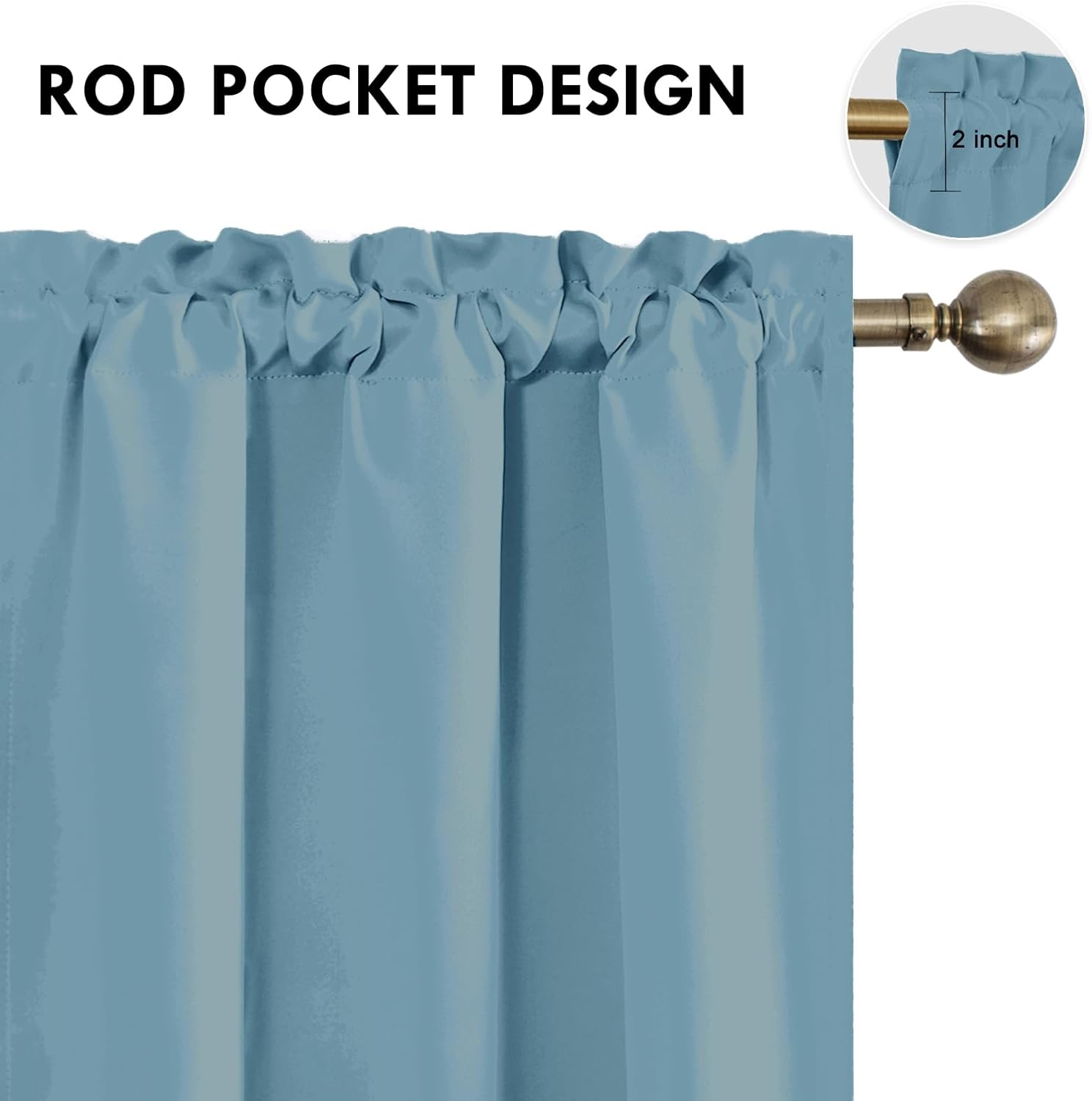 DWCN Blackout Curtains for Living Room Thermal Insulated, Energy Saving & Noise Reducing Bedroom Curtains, Stone Blue, W 38x L 45 Inch, Set of 2 Rod Pocket Curtain Panels