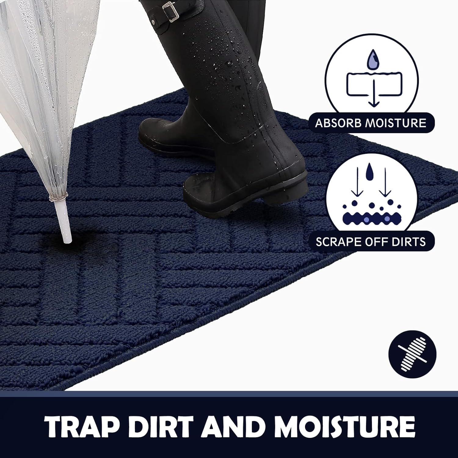 - KEEP YOUR FLOORS CLEANE AND DRY: Our Indoor Doormat was designed with double layer technology and irregularity carpet surface design. It is more efficient to absorb water and catch mud and moisture from muddy boots or pet’s paws. No pressure, keep your home cleaner and more beautiful