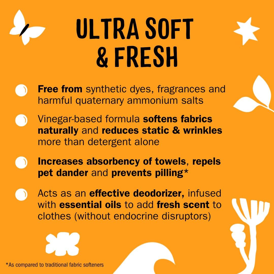 - SOFT, STATIC FREE CLOTHES: Unlike traditional fabric softeners that can deposit residues on clothes, Molly’s Suds vinegar-powered Fabric Softener uses simple ingredients (no harmful quaternary ammonium compounds!) to leave clothes feeling fresh, cozy, and comfy. Ideal for sensitive skin, the planet, and all washing machines. Our clean formula reduces static and wrinkles more than detergent alone, so you and your family can look and feel your best.