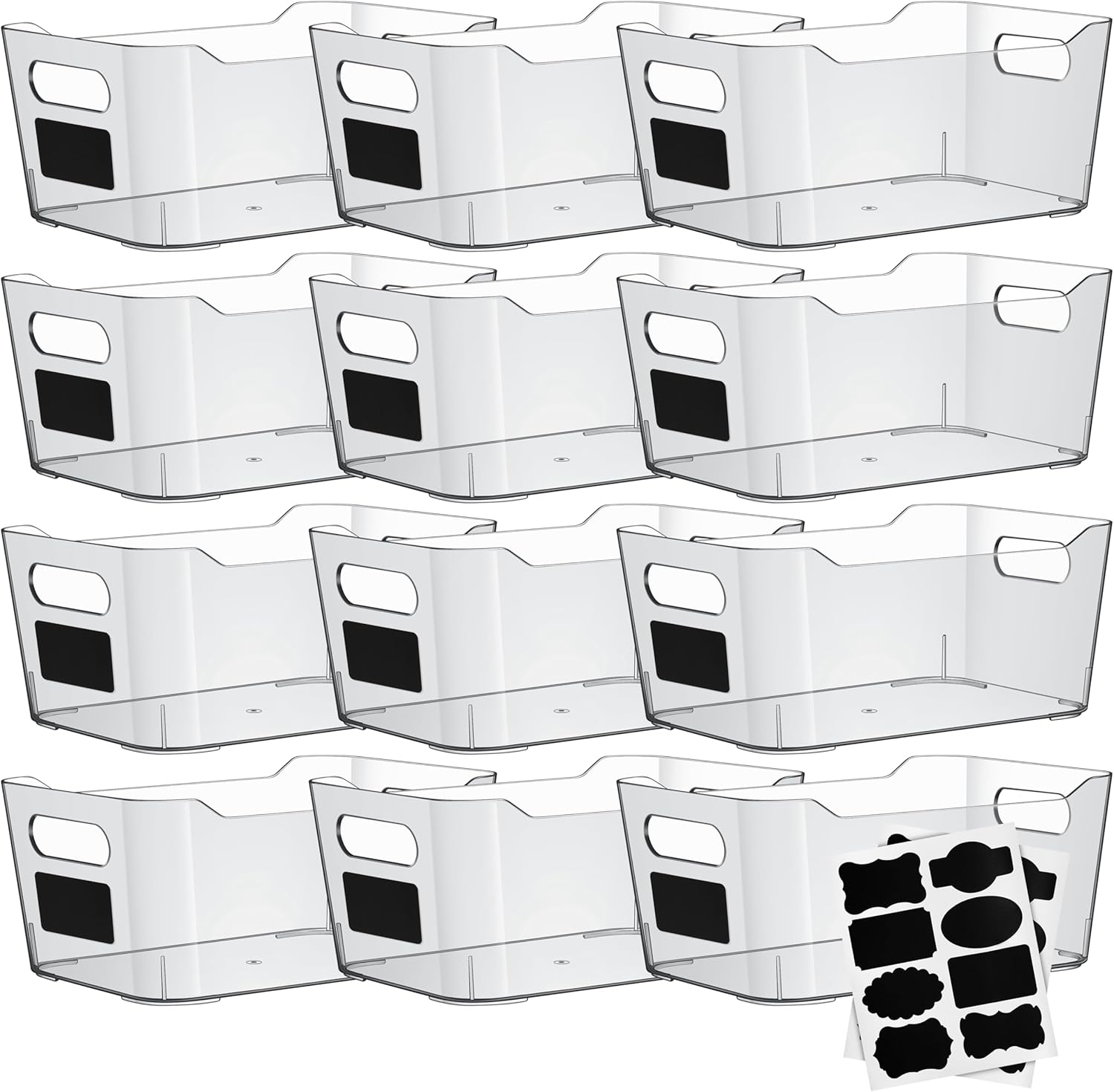 Clear Plastic Storage Bins with Labels and Marker, Perfect for Kitchen Organization or Pantry Organization and Storage, Medium Fridge Organizer and Cabinet Organizers Storage Bins