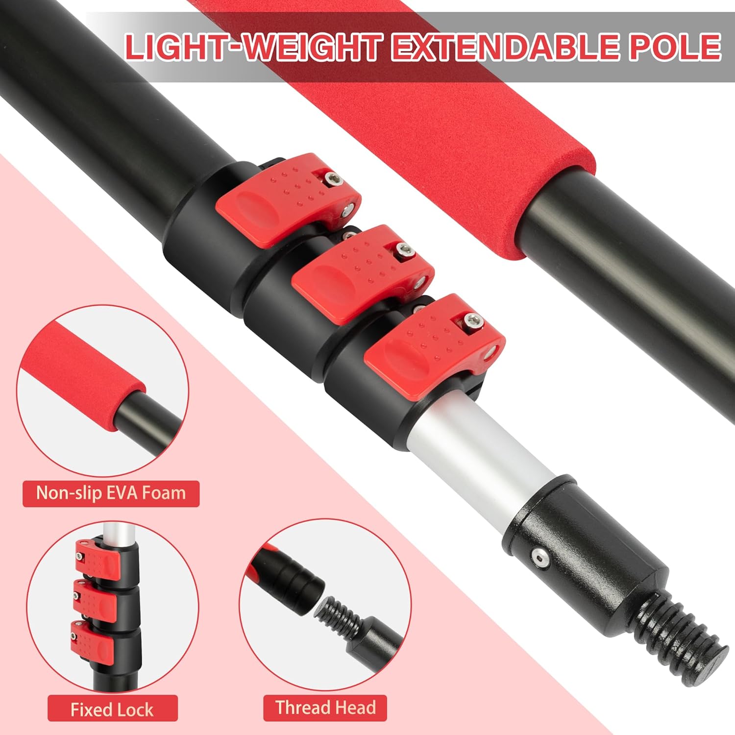 - Freely Adjustable Length: 3-stage adjustable extendable pole with lock buttons, easily extend telescopic rod to desired length and secure pole with the lock buttons, 20 feet high reach to clean spider webs up to 2nd floor outdoor.