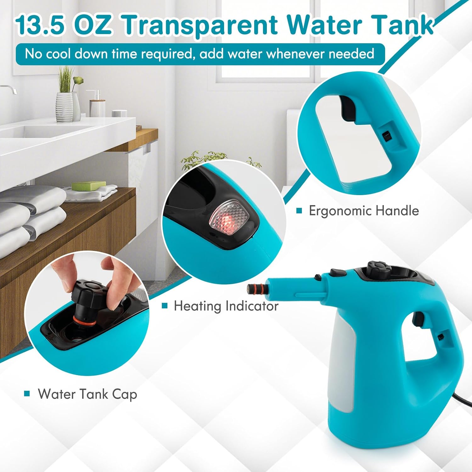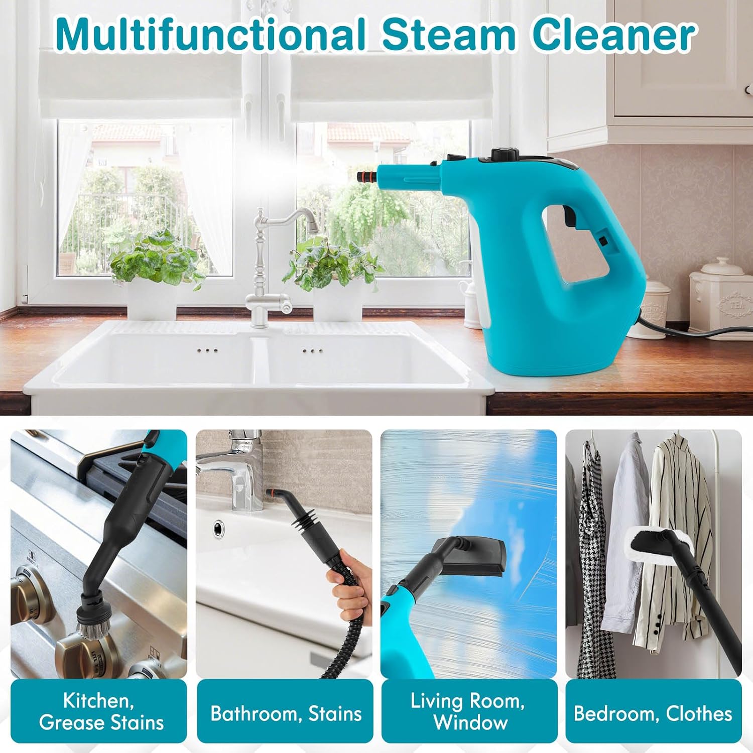 COSTWAY Handheld MultiPurpose Steam Cleaner with 17 Pieces, 350ml Large Capacity Steam Mop Continuous Fill water, Portable Chemical-Free Steamer for Home Use, Floors, Windows, 1400W, Blue