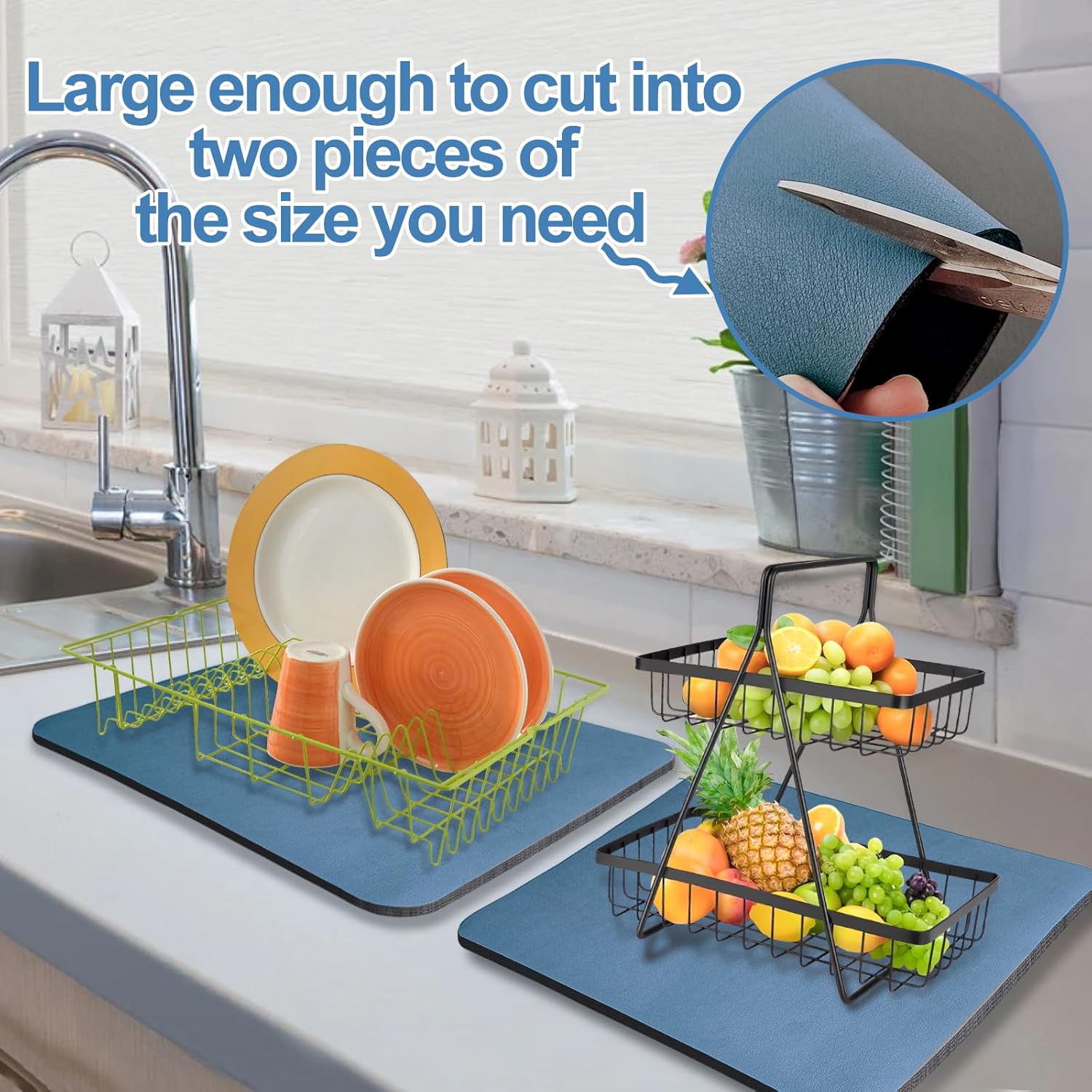 - Dish Drying Mat: Each kitchen counter mat measures 17 x 31.5 inches, which is larger than ordinary draining mats and can hold large pots, pans, and more dishes. Dishmats are perfect for kitchen counters and bathroom countertops.