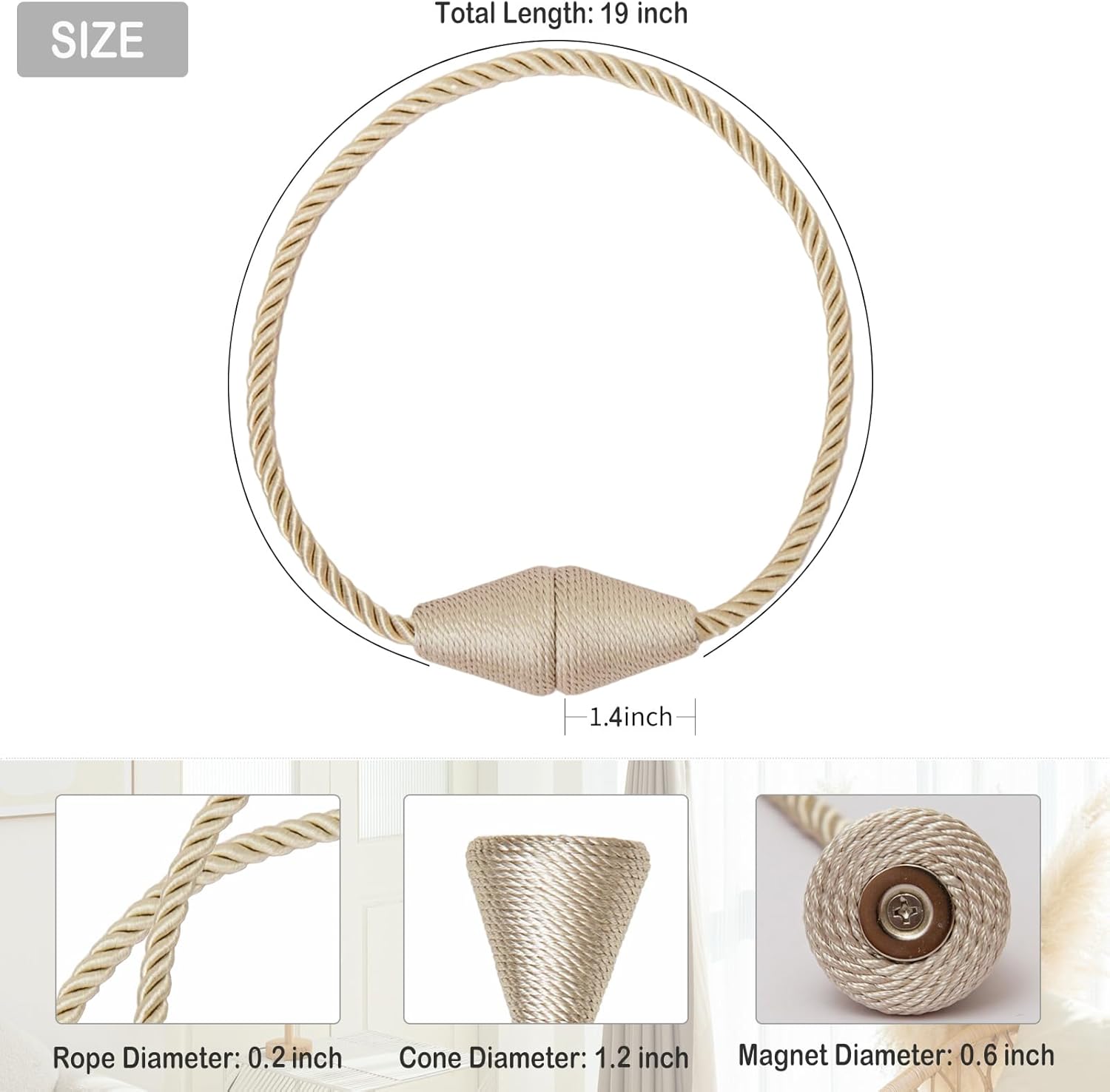 Magnetic Curtain Tiebacks 2 Pack Outdoor Rope Curtain Tie Backs Decorative Window Treatment Holdbacks for Home Decorative Curtain, Beige