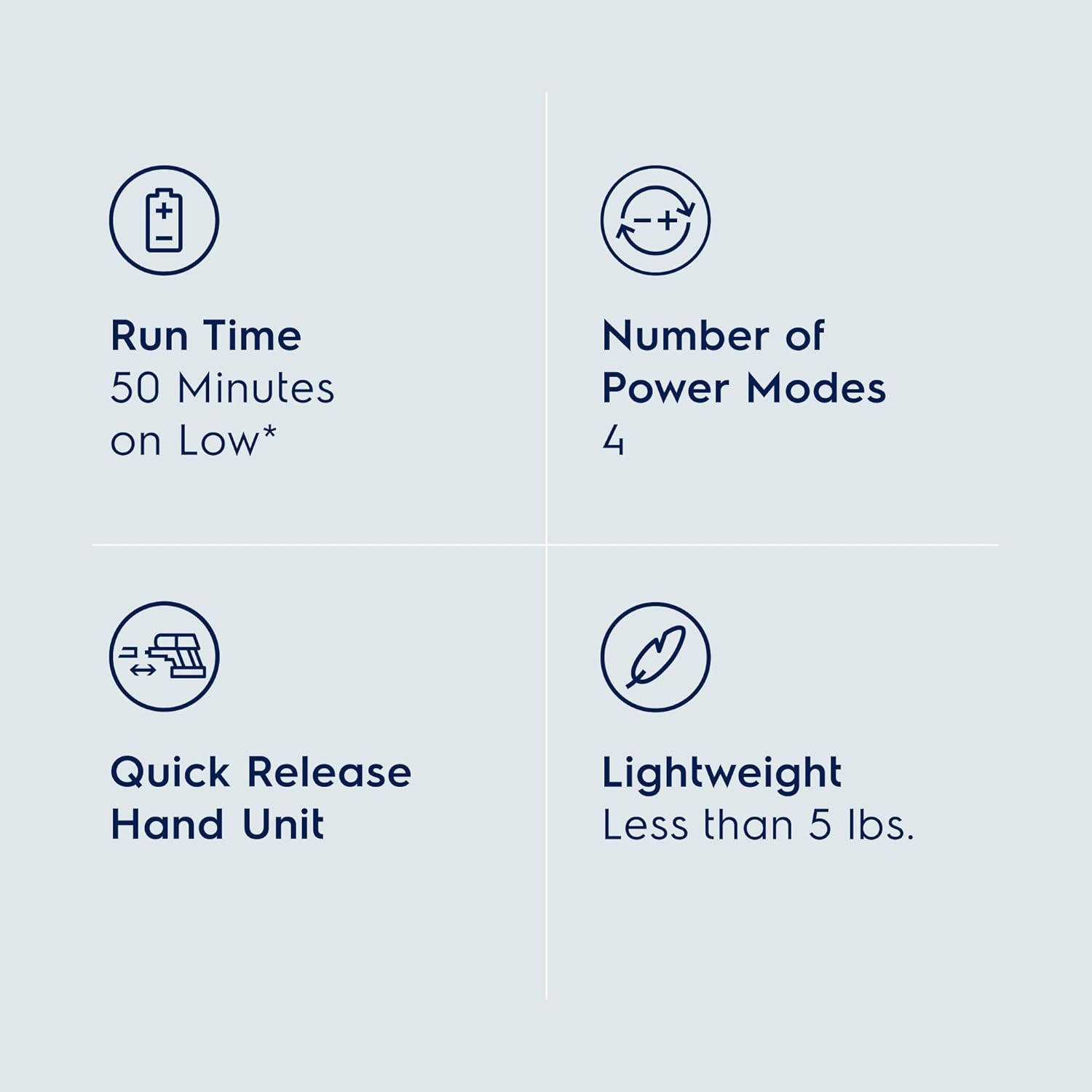 - Versatile Design: Weighing less than 5 lbs., this lightweight stick vacuum offers easy maneuverability with a full tilt design for effortless clean-up under furniture and a quick release hand unit for smaller messes