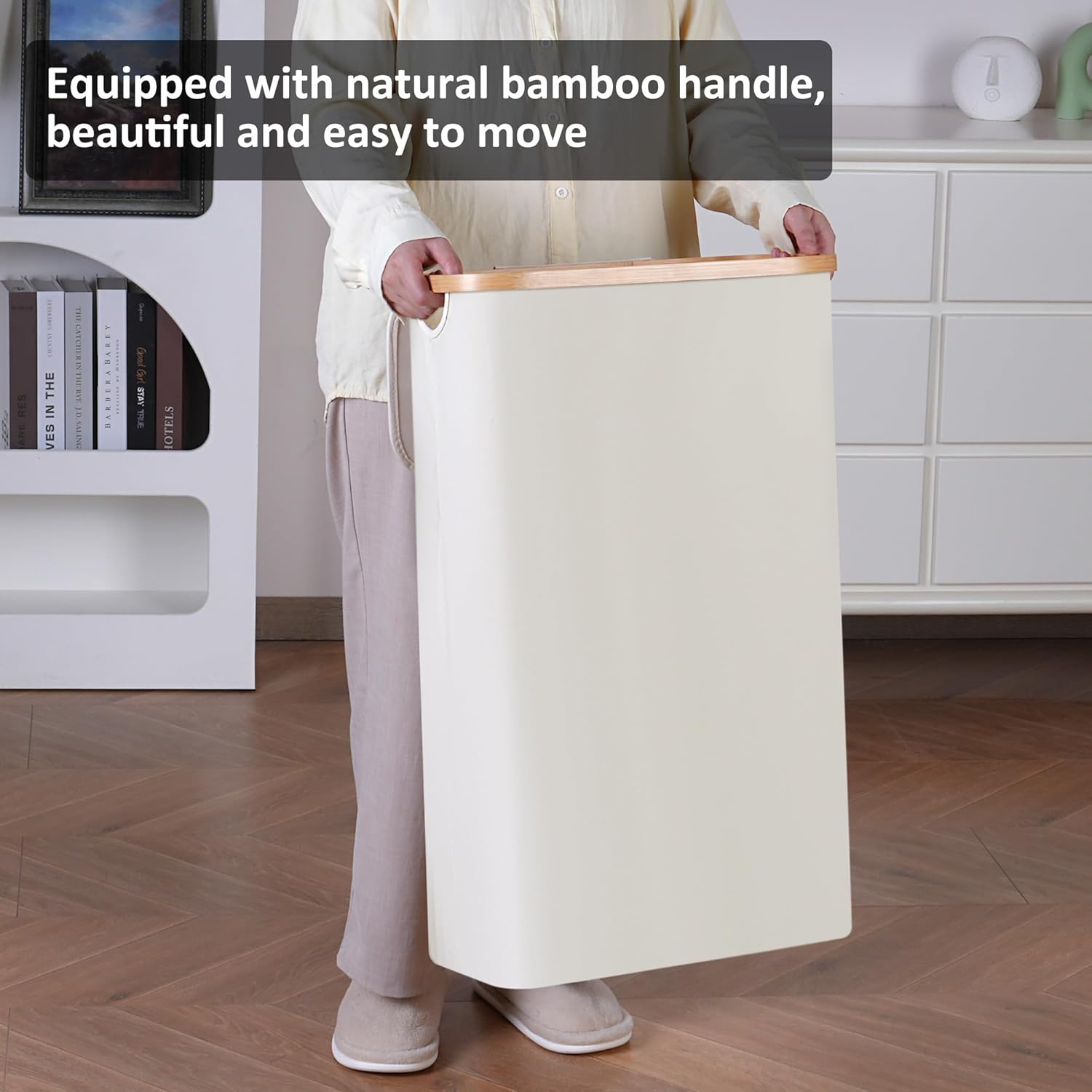 - 【Make Laundry Easier】The smooth bamboo handle ensures a comfortable grip without hurting your hands during use. The lid of the laundry basket is designed to prevent odor diffusion, providing you with a clean environment. It offers a larger capacity for storing and organizing clothes, helping you maintain a clean and tidy home or dormitory.