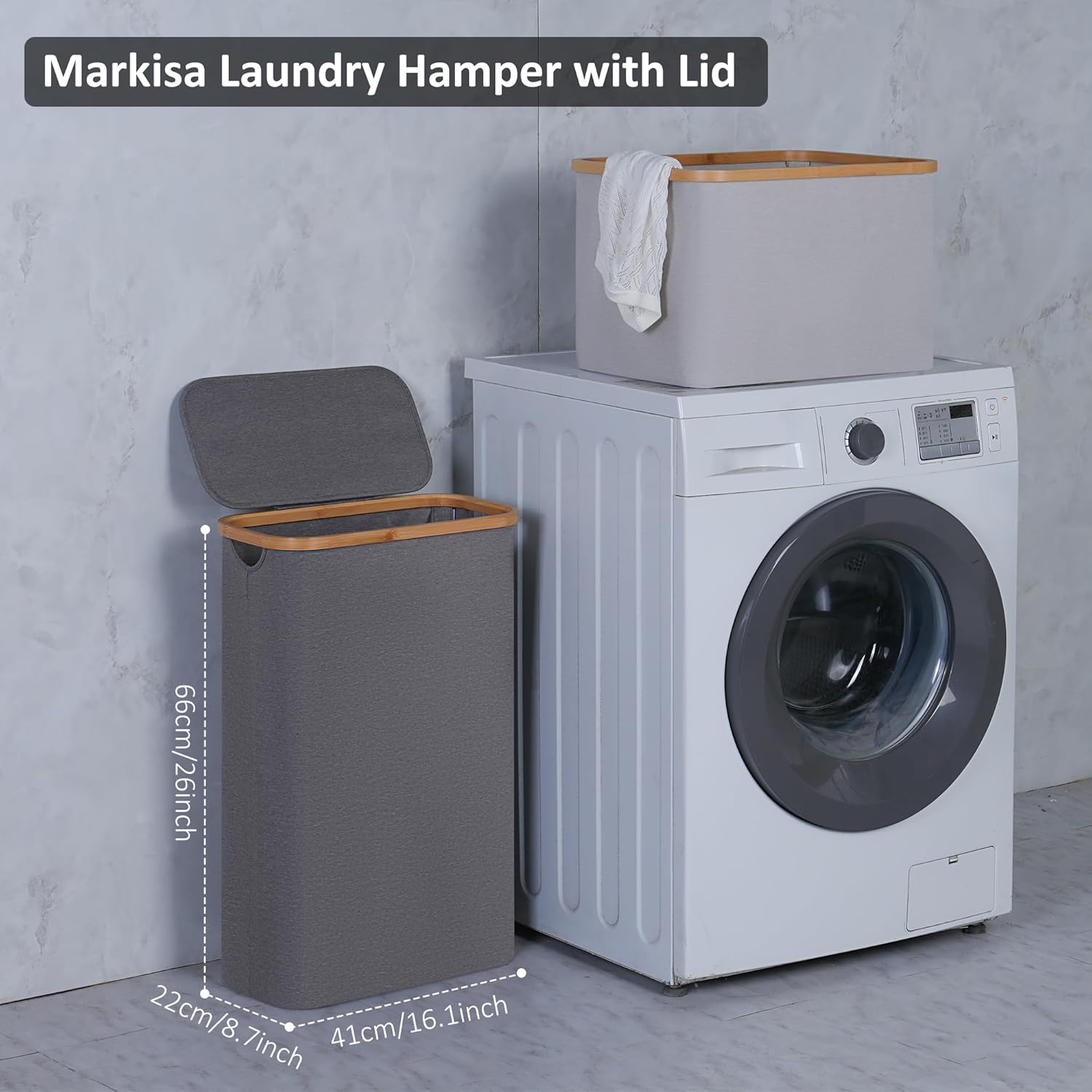 - 【Make Laundry Easier】The smooth bamboo handle ensures a comfortable grip without hurting your hands during use. The lid of the laundry basket is designed to prevent odor diffusion, providing you with a clean environment. It offers a larger capacity for storing and organizing clothes, helping you maintain a clean and tidy home or dormitory.