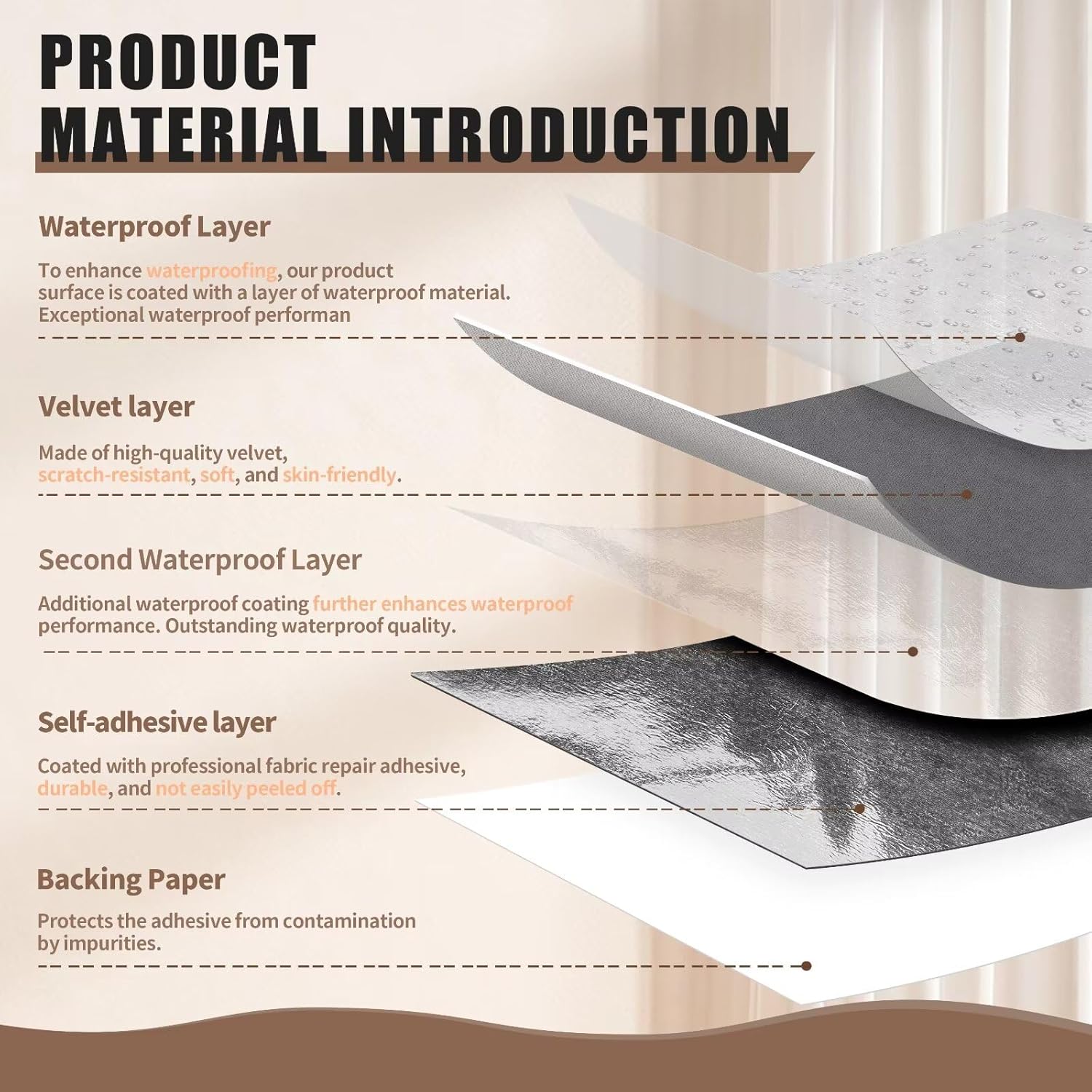 - Premium Material: The front of this microfiber patch features high-quality velvet, backed by professional fabric adhesive. Two layers of waterproof protection.Soft, skin-friendly, waterproof, wear-resistant, scratch-resistant, and health-conscious.