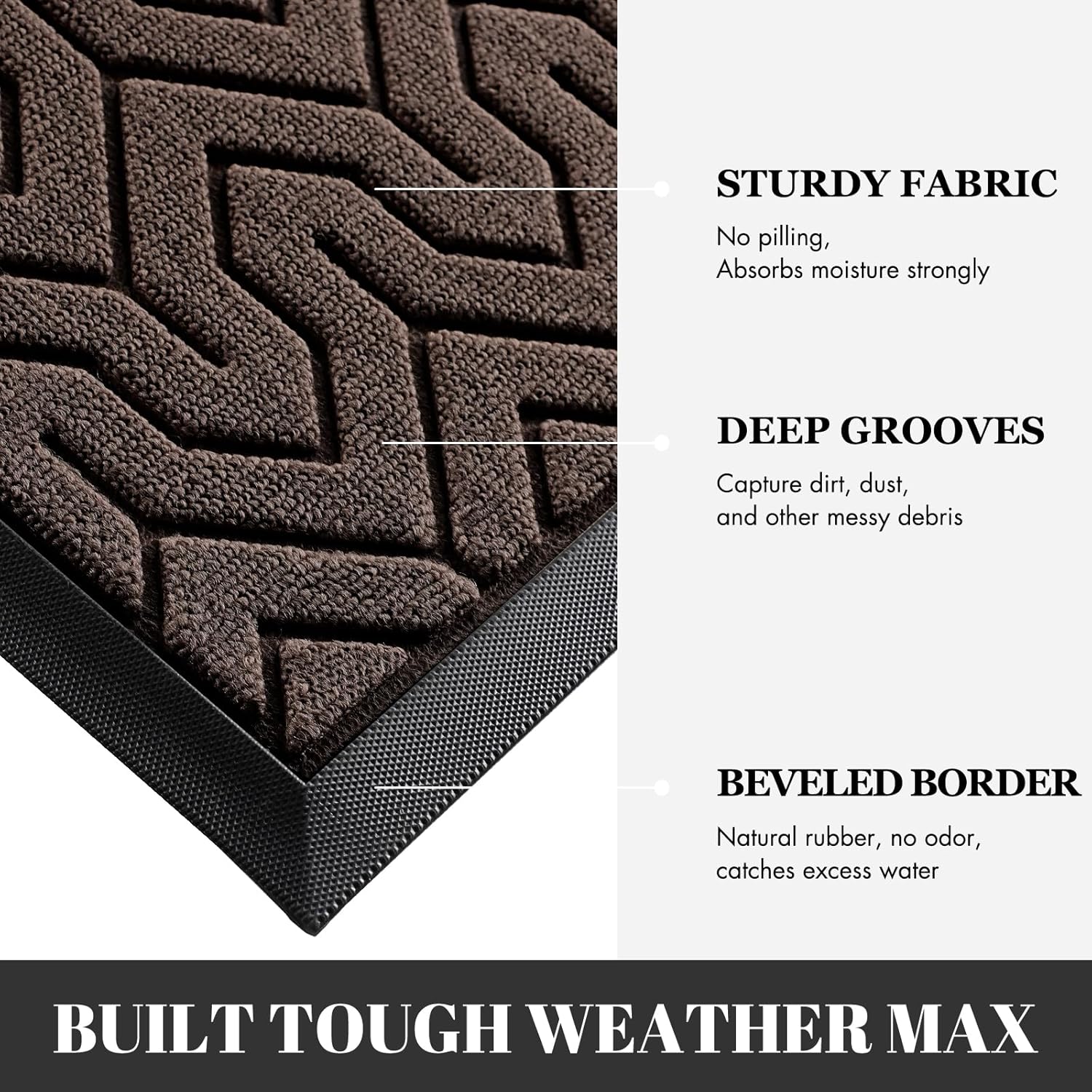 - Superior Dust Trapping & Waterproof: Featured deep Y-pattern grooves, the front door mat effectively scrapes off mud, dust and debris from shoe soles, keeping dirt outside your home. Made of high-quality polypropylene, this mat is waterproof and holds up perfectly even after rain. Its strong structure withstands heavy foot traffic without losing shape or functionality