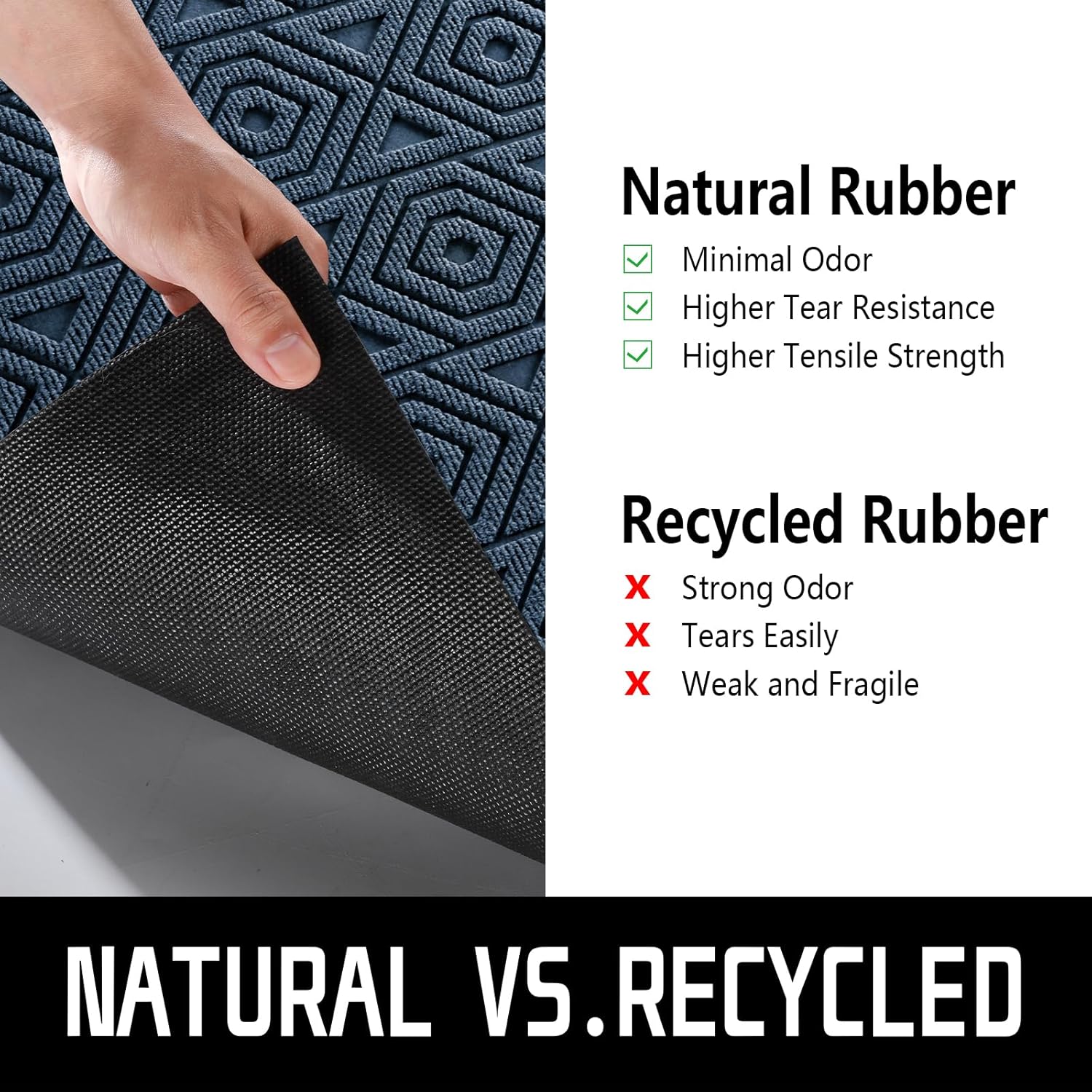 - [RUGGED AND STURDY] The surface of this Yimobra outdoor mat is made of high-quality polyester, unique Hot-melt Planting Production Process, which is designed to be sturdy, strong and flexible. The doormat in outside can withstand a variety of weather and seasonal changes, whether it is sunny, rainy or snowy