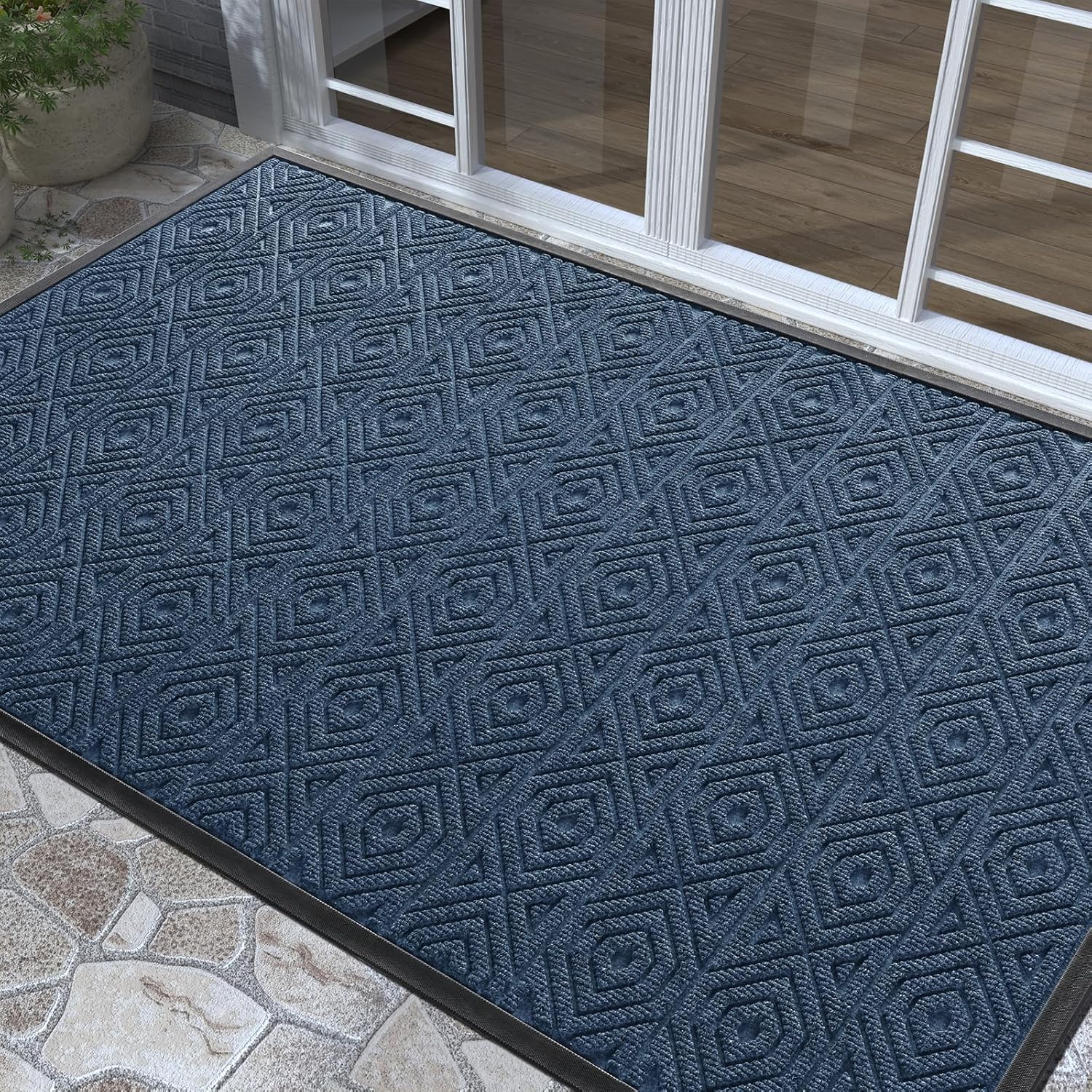 Yimobra Door Mat, Outdoor Indoor Entrance Welcome Mat, Heavy Entry Front Door Mat, Stain & Fade Resistant, Low Profile, Sturdy Rubber, Easy Clean Patio Floor Mat, Waterproof, 60 x 36,Blue