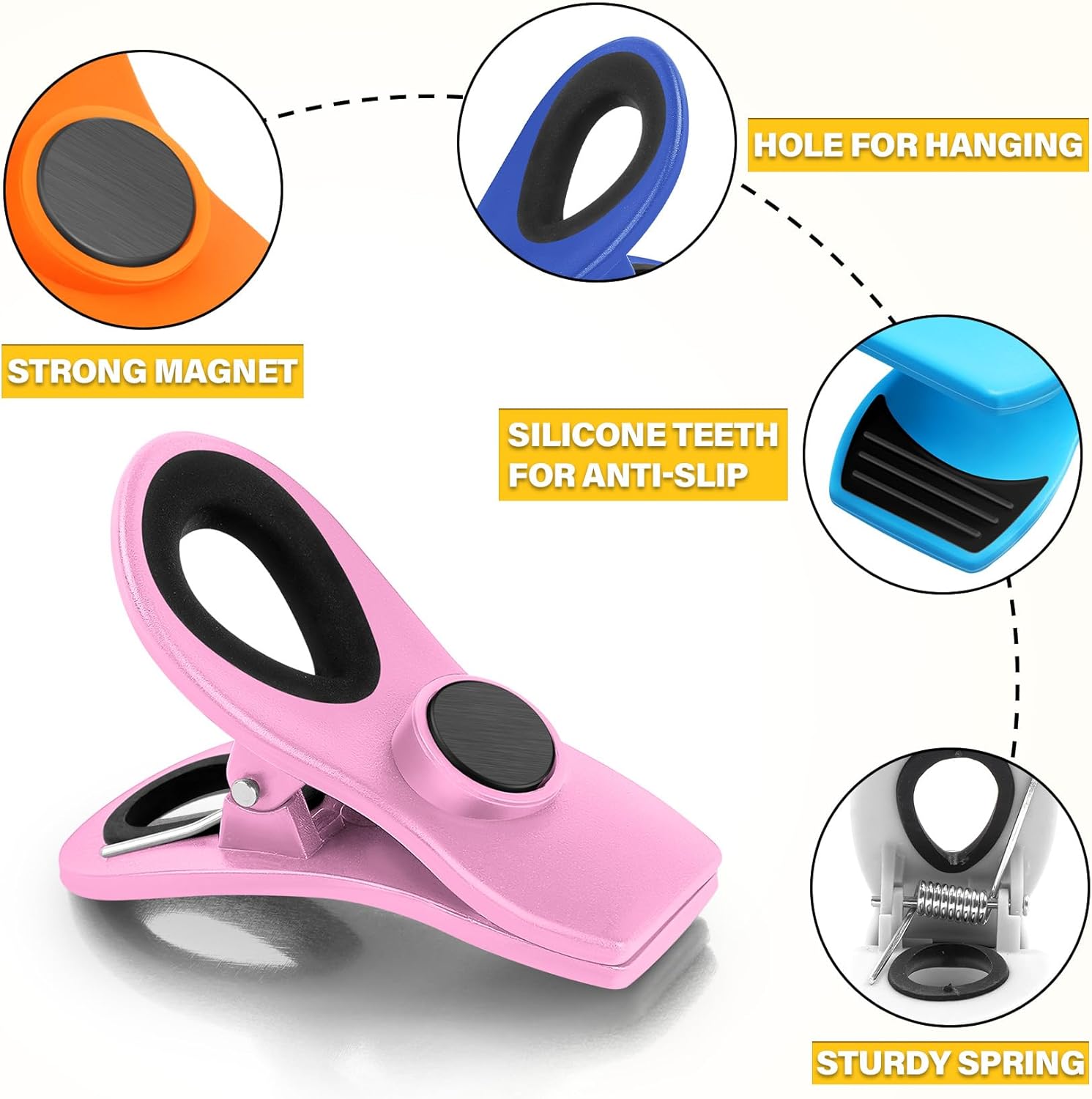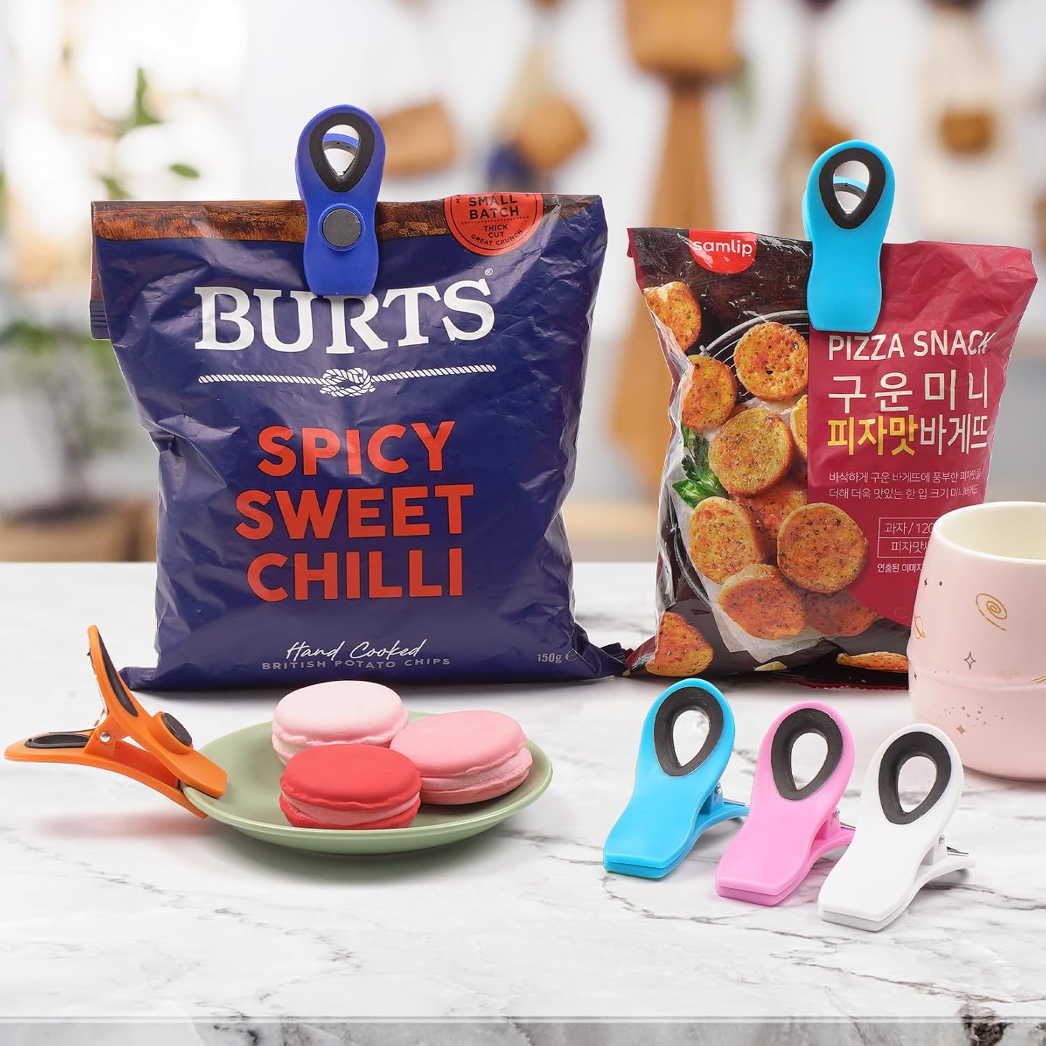 - Magnetic Chip Clips- Our clips are equipped with magnets on the back, making it easy to attach them to the fridge. Chip bag clips are not only useful for sealing chip bags but also convenient for holding notes, photos, artwork, receipts, and other small items.