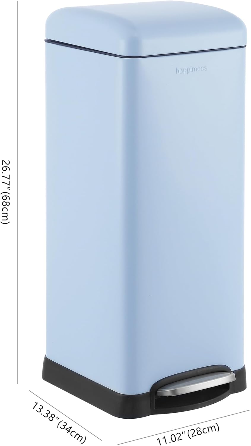 happimess HPM1007I Betty Retro 8-Gallon Step-Open Trash Can, Fingerprint Resistant, Modern, Minimalistic for Home, Kitchen, Laundry Room, Office, Bedroom, Bathroom, Tide Pool Blue