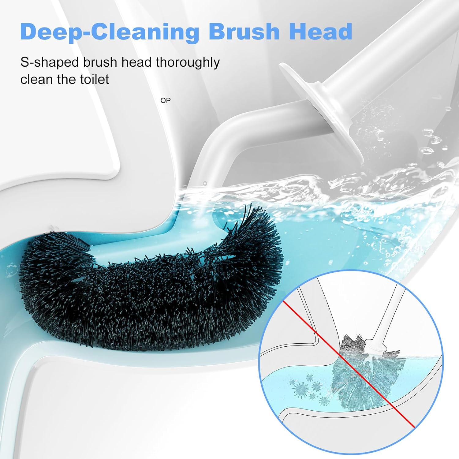 - CURVED DESIGN SCRUBBER: The toilet bowl brush and holder has a specially S-shaped design that easily reach hard-to-clean areas, it can get up under the rim of the and down to the hole. The brush bristles are very flexible and long-lasting to and debris without hurting the glaze. It's ideal for keeping the bowl clean, that are suitable bathroom and restroom cleaning tools as new home and apartment essentials
