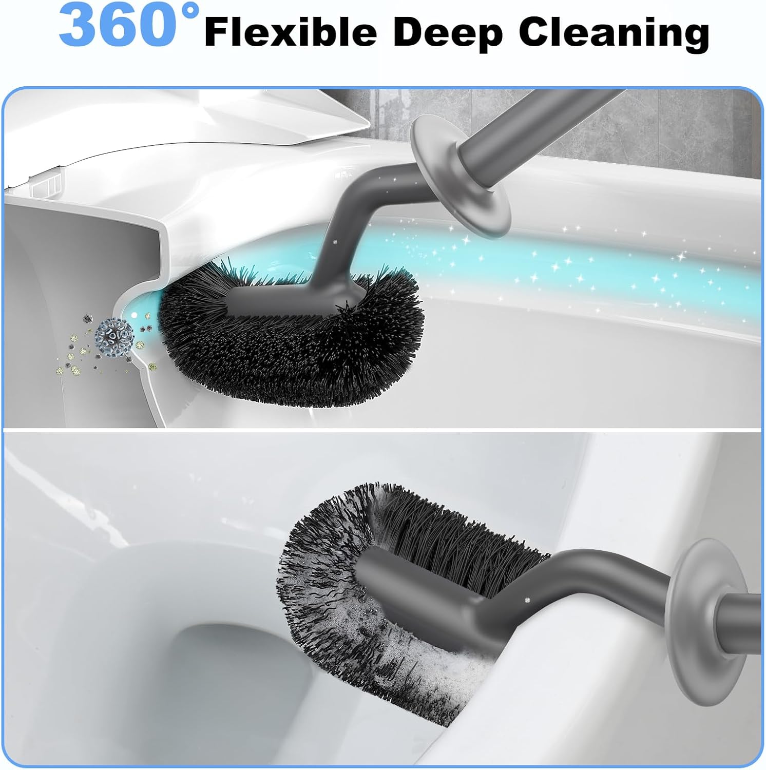 - [CURVED DESIGN SCRUBBER] The toilet bowl brush and holder has a specially S-shaped design that easily reach hard-to-clean areas,it can get up under the rim of the and down to the hole. The brush bristles are very flexible and durable to and debris without hurting the glaze. It's ideal for keeping the bowl clean and fresh.