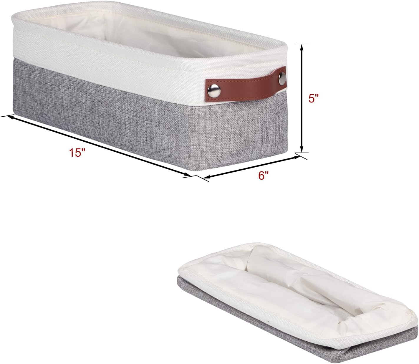 Univivi 4PC Small Fabric Storage Bins,15x6x5 inch Long Narrow Storage Baskets with PU Handles for Closet,Cabinet,Countertop Organizing Small Items (Gray,15x6x5 inch)