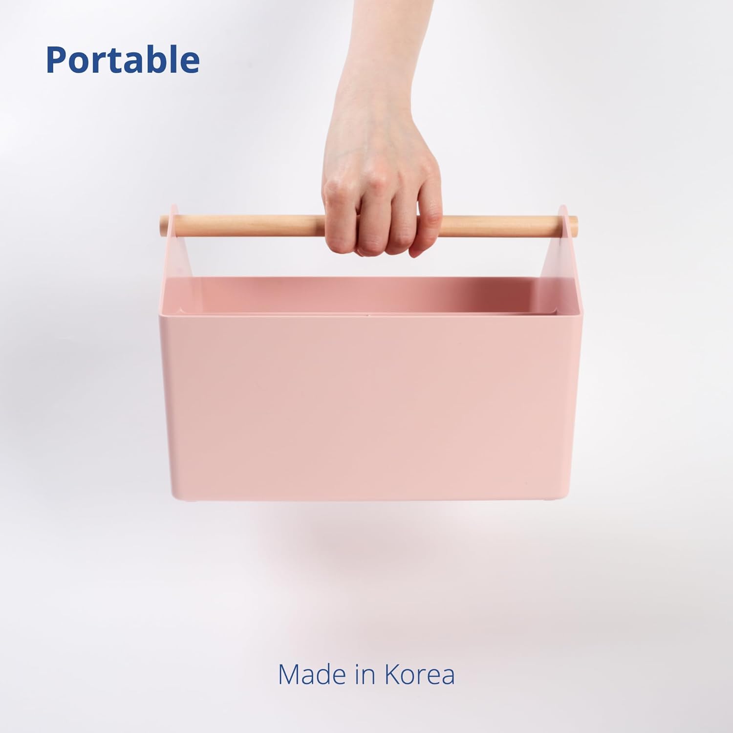 BLUE GINKGO Medium Storage Basket – Plastic Caddy with Wooden Handle for Office, Arts & Crafts, or Home Supplies (Pink)