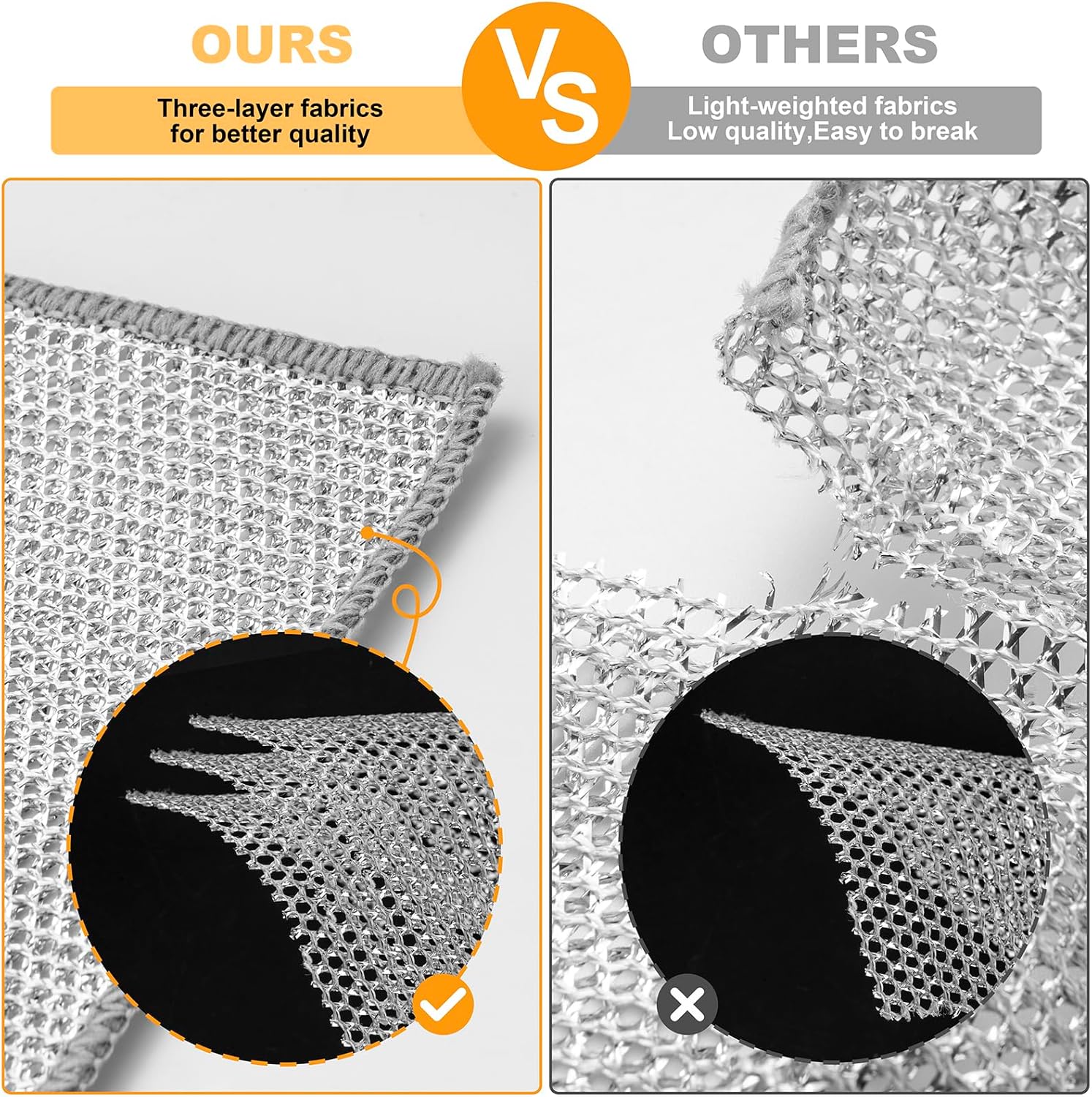 - ✅Scratchless design: Our dishwashing cloth is made of special fabric and silver wire. It is durable, easy to use and not leave scratches or damage your tableware and kitchen utensils, so that you can rest assured to clean.