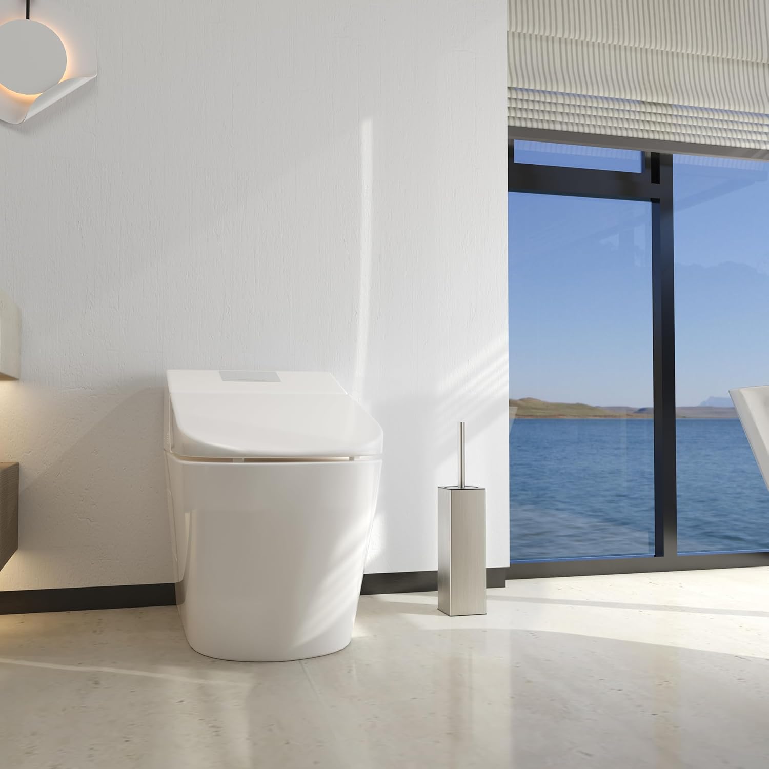 BGL Square Toilet Brush with Holder,Stainless Steel Rubber Painted Toilet Bowl Brush and Holder for Bathroom,2 Cleaner Brush Heads,Brushed Nickel