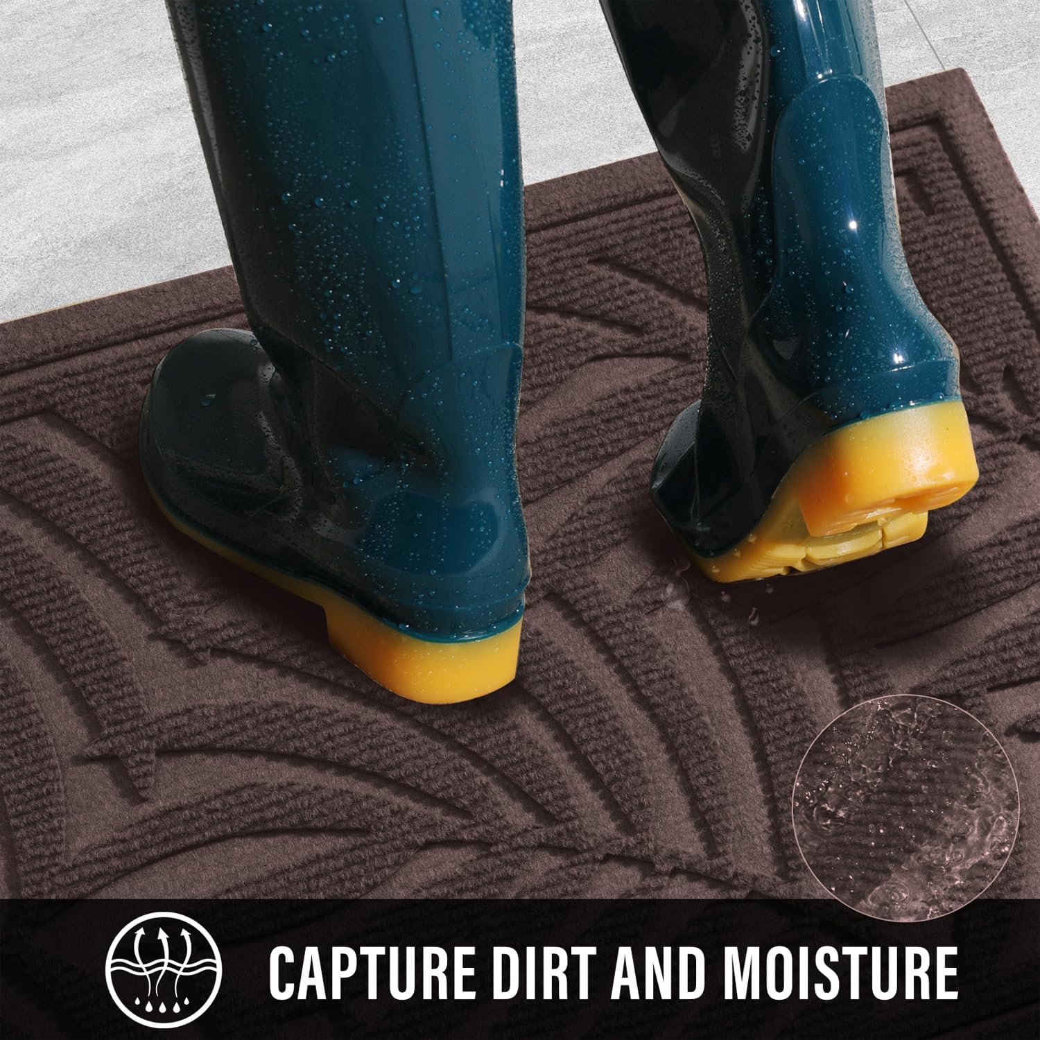 - Capture Dirt and Moisture: Doormat super absorbent, HIYARD outdoor welcome mat holds up to 1.8 gallons of water per square yard. Deep groove design and rubber border helps capture water and prevents excess water from spilling onto the ground. Indoor door mat surface fibers scrape dust and debris from your shoes, boots, paws. Let the dirt stay out