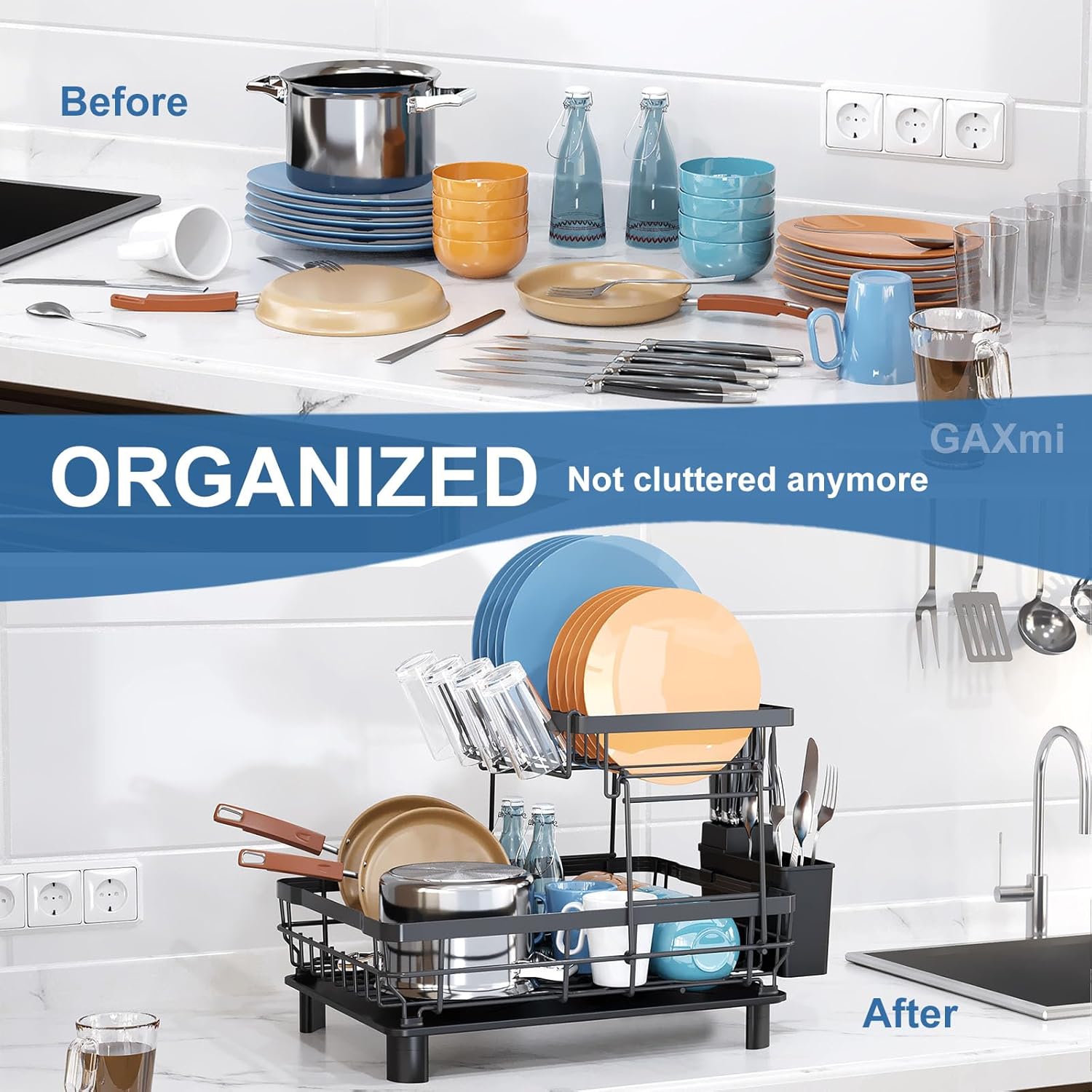 - Space-Saving: this dish drying rack is able to organize one meal tableware. Your kitchen countertop will not be scattered anymore.
