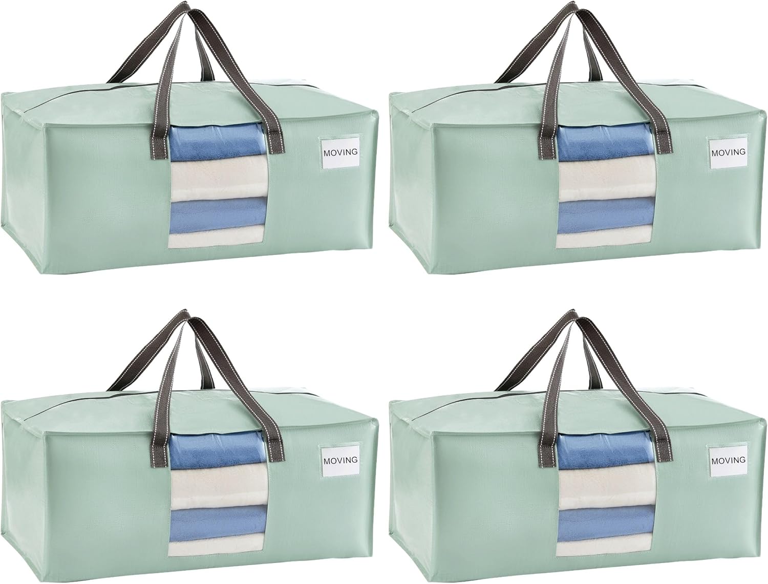 VENO 4 Pack Moving Bags for College, Heavy-Duty Storage Totes, Moving Boxes and Wardrobe Packing Supplies Alternative - Extra Large Durable Laundry Bags for Clothes (Shiny Light Green, 4 Pack)