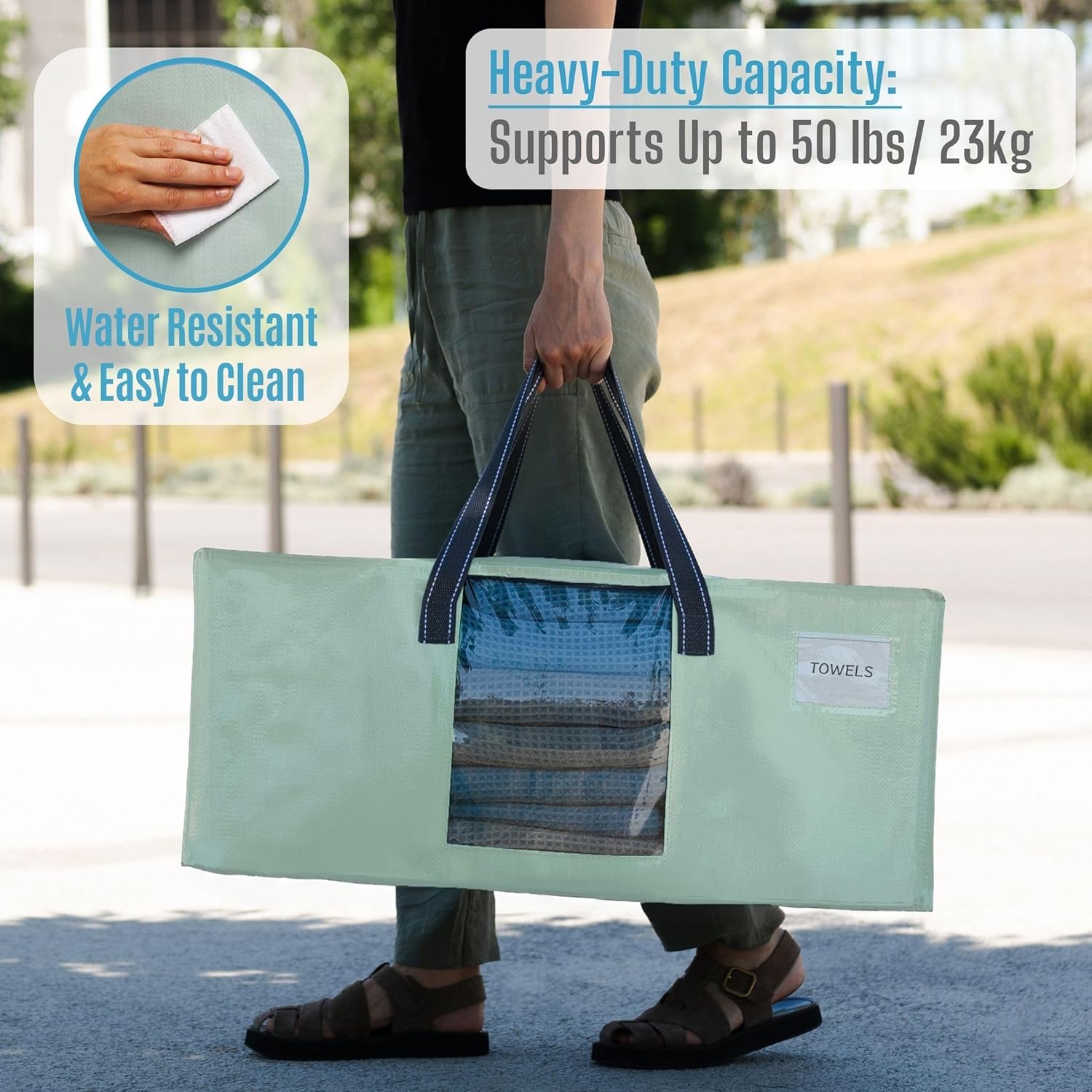- Instant Identification – Featuring a transparent (window) design alongside a handy tag pocket, this storage bag simplifies identifying the contents within, ensuring swift access to your stored items, be it college dorm essentials, camping gear, or various household items. Ideal for moving, organizing, and storage tasks, this versatile bag guarantees that no matter where you store your belongings, they remain neatly organized and easily identifiable.