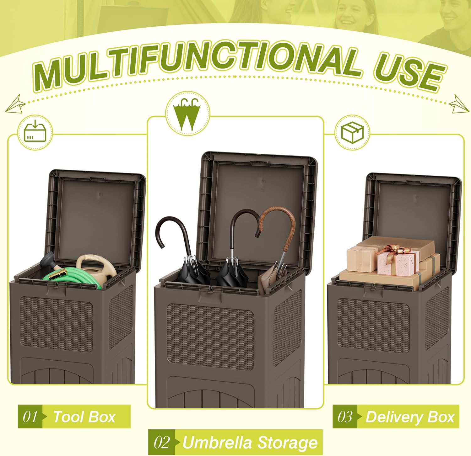 - Multi-Functional Use: This resin outdoor trash can withstand the effects of various outdoor elements, preventing the entry of water and dust. It can also be used as an outdoor storage bin, suitable for patio, swimming pool and other multi-scenario use needs