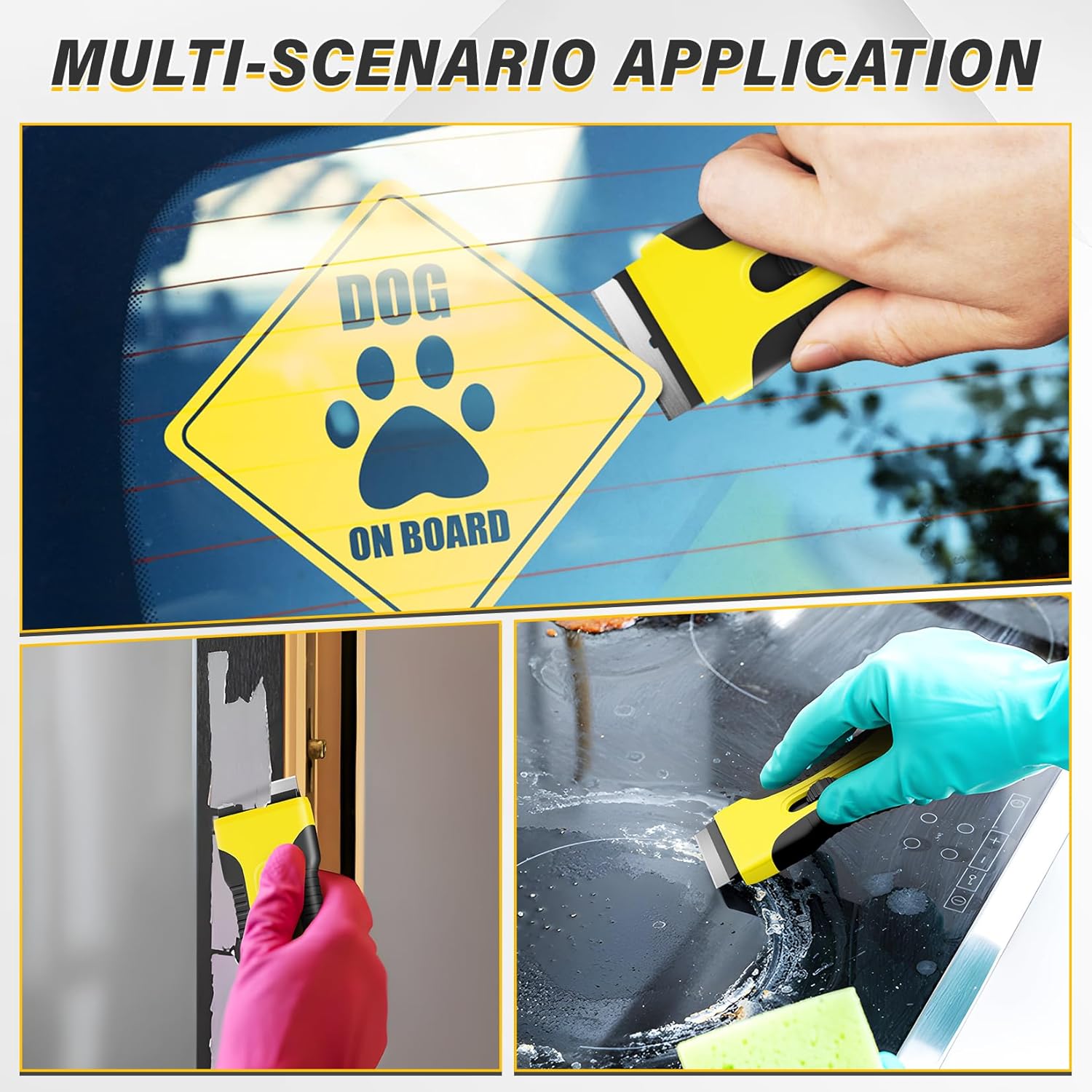 - Multi-Purpose Scraper for Cleaning: This razor scraper tool for glass is perfect for tackling tough cleaning tasks on glass, ceramic, metal, and more. It efficiently removes burnt food from stovetops, stubborn stickers from car windows, and old paint or caulk from walls and floors. Whether you're working in the kitchen, bathroom, or garage, this glass top stove scraper tool for glass provides a reliable solution for removing unwanted residues and debris.