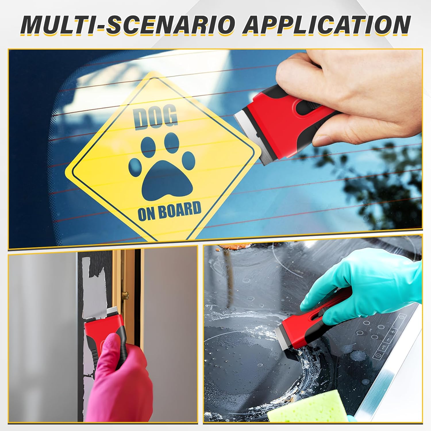 - Multi-Purpose Scraper for Cleaning: This razor scraper tool for glass is perfect for tackling tough cleaning tasks on glass, ceramic, metal, and more. It efficiently removes burnt food from stovetops, stubborn stickers from car windows, and old paint or caulk from walls and floors. Whether you're working in the kitchen, bathroom, or garage, this glass top stove scraper tool for glass provides a reliable solution for removing unwanted residues and debris.