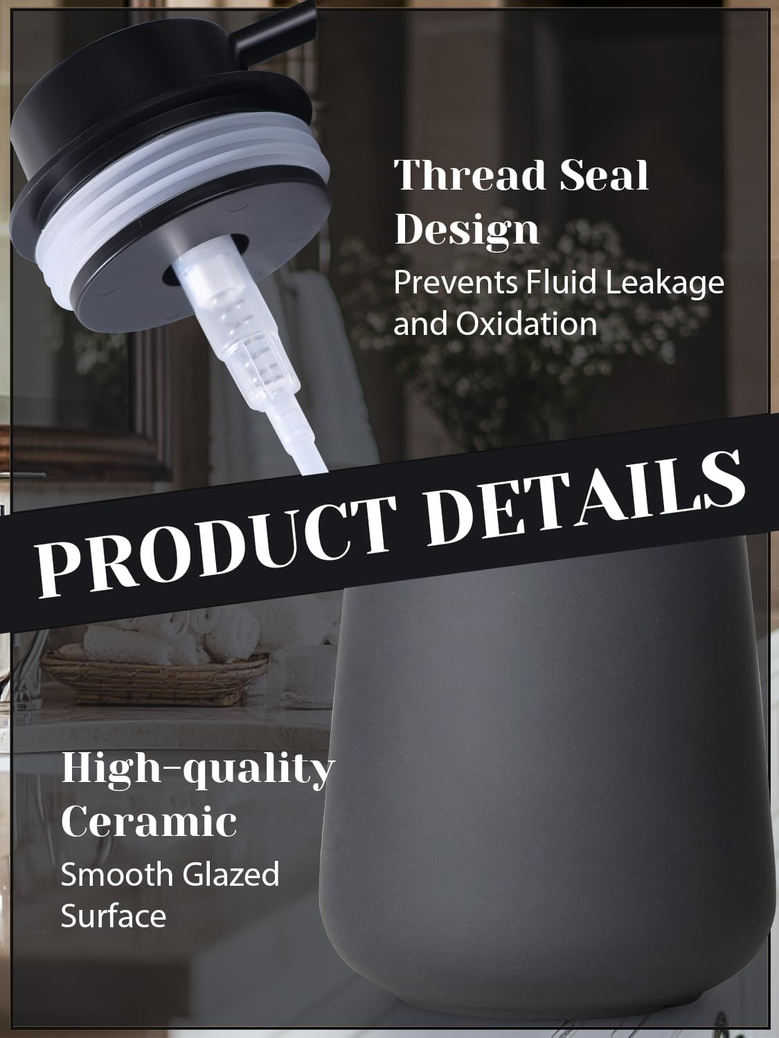 - EASY TO PRESS: The Ceramic Hand Soap Dispenser uses a large area press pump made of premium plastic, we can easily squeeze out the liquid