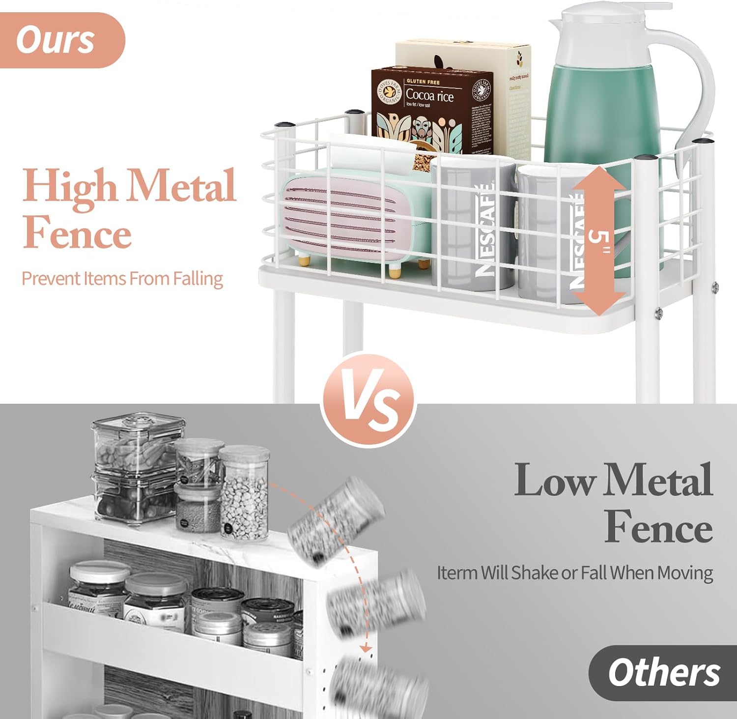 - 【HIGH MESH GUARDRAIL Design】The rolling cart features a high mesh design, providing added height to prevent items from falling off. This utility cart ensures secure storage for all your items. You can display your photos on top of the mesh to add fun to daily life.You can discover more storage solutions and interesting ideas in the process of using this cart.