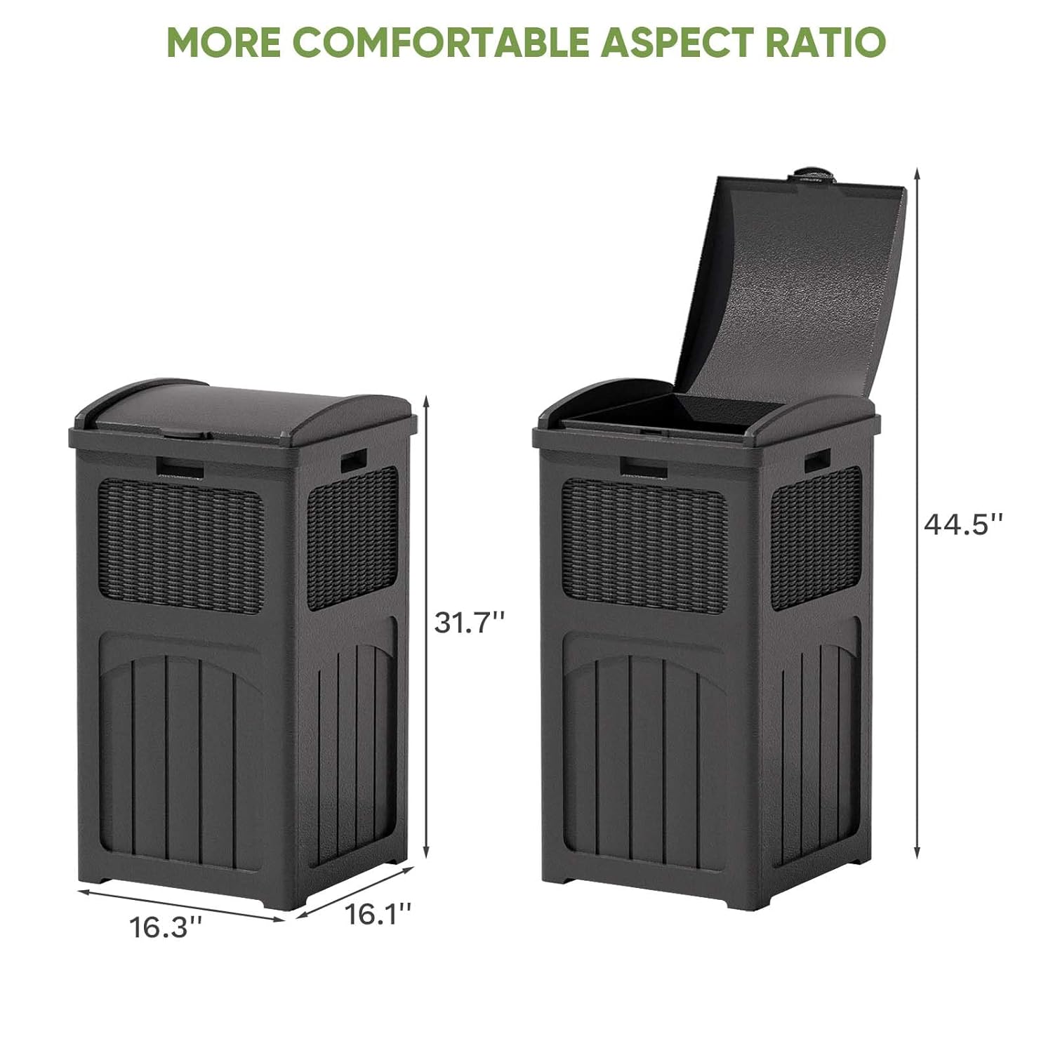 - Stylish appearance: With wicker design on the outside, it can be placed on any deck or patio, and can also be matched with other furniture.The wide range of colour variants gives you more options for integrating the bin into your home style.