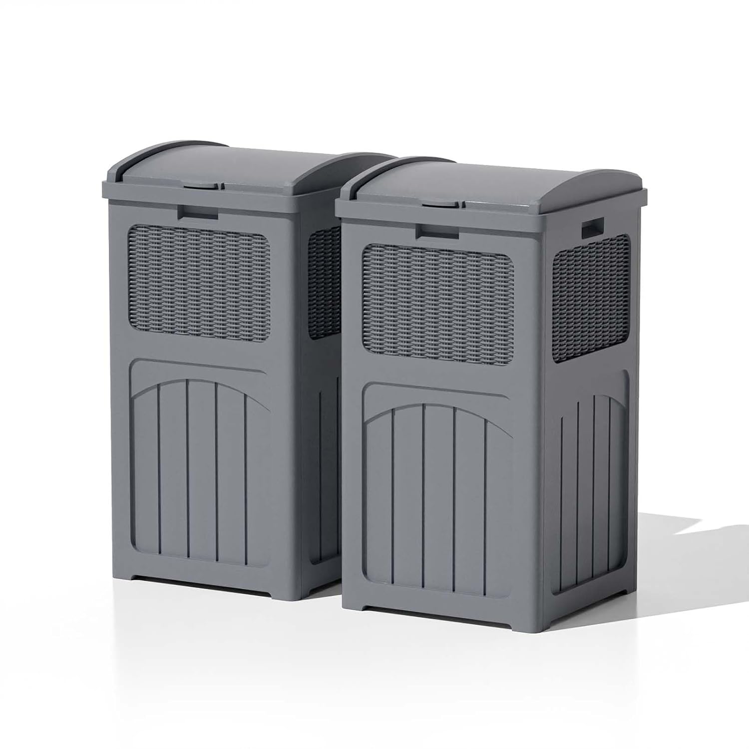 Patiowell 36 Gallon Outdoor Trash Can, Resin Outdoor Garbage Can with Lid for Patio, Backyard, Deck, Gray (2 Pack)