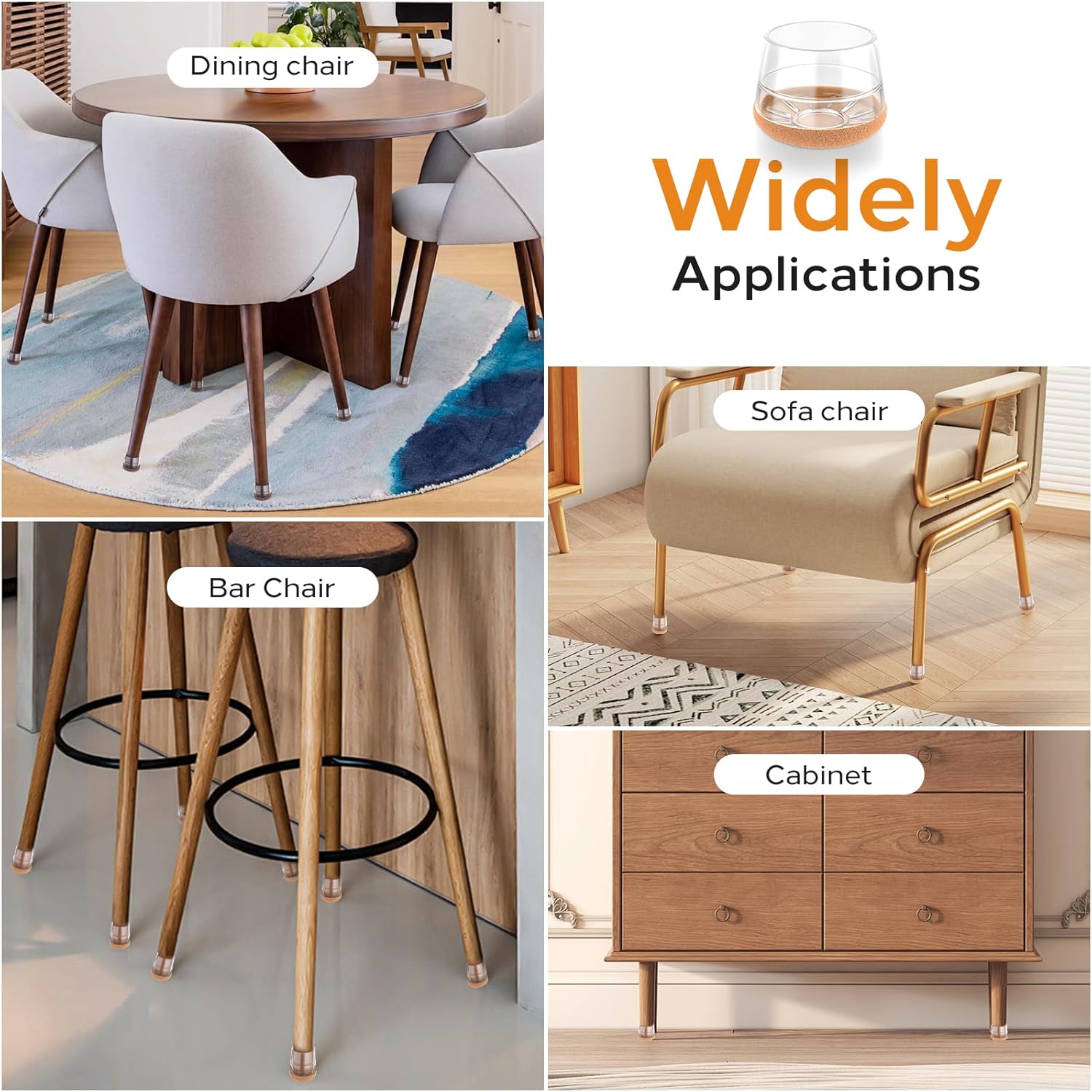- Wide Range of Use-Rubber chair leg floor protectors are perfect for protecting hardwood floors, tile, marble, carpet, and rugs from scratches. Can be suitable for most shapes of round, square chair legs, such as kitchen chairs, dining room chairs, bar stools, metal chair legs, high chairs, bed floor protectors, sofa stool leg caps, and table leg floor protectors.