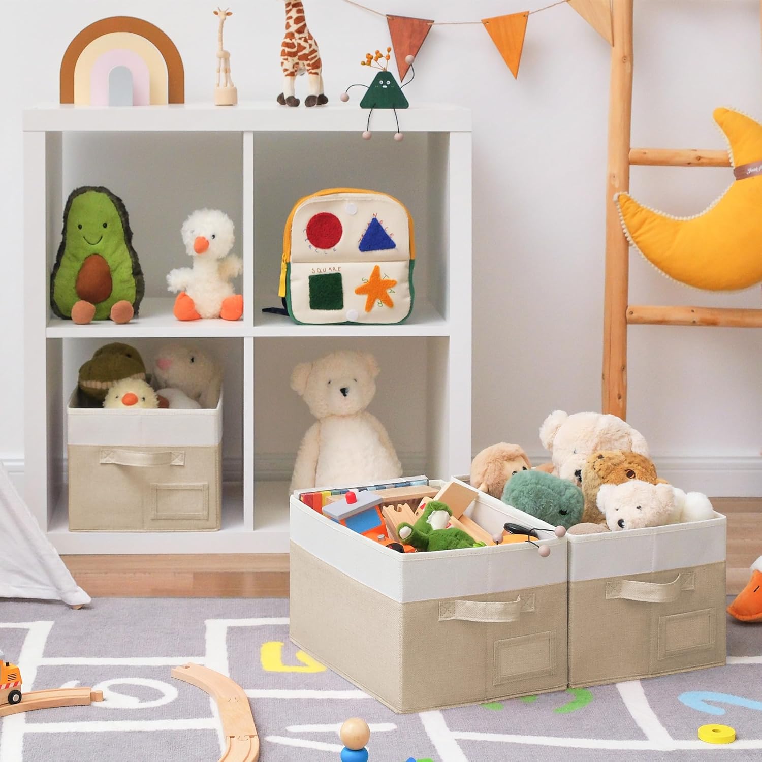 GRANNY SAYS Storage Baskets for Organizing, Fabric Storage Bins for Shelves, Closet Storage Boxs, Clothing Storage and Organization, Decorative Storage Bins, Khaki&Ivory, Large, 3-Pack
