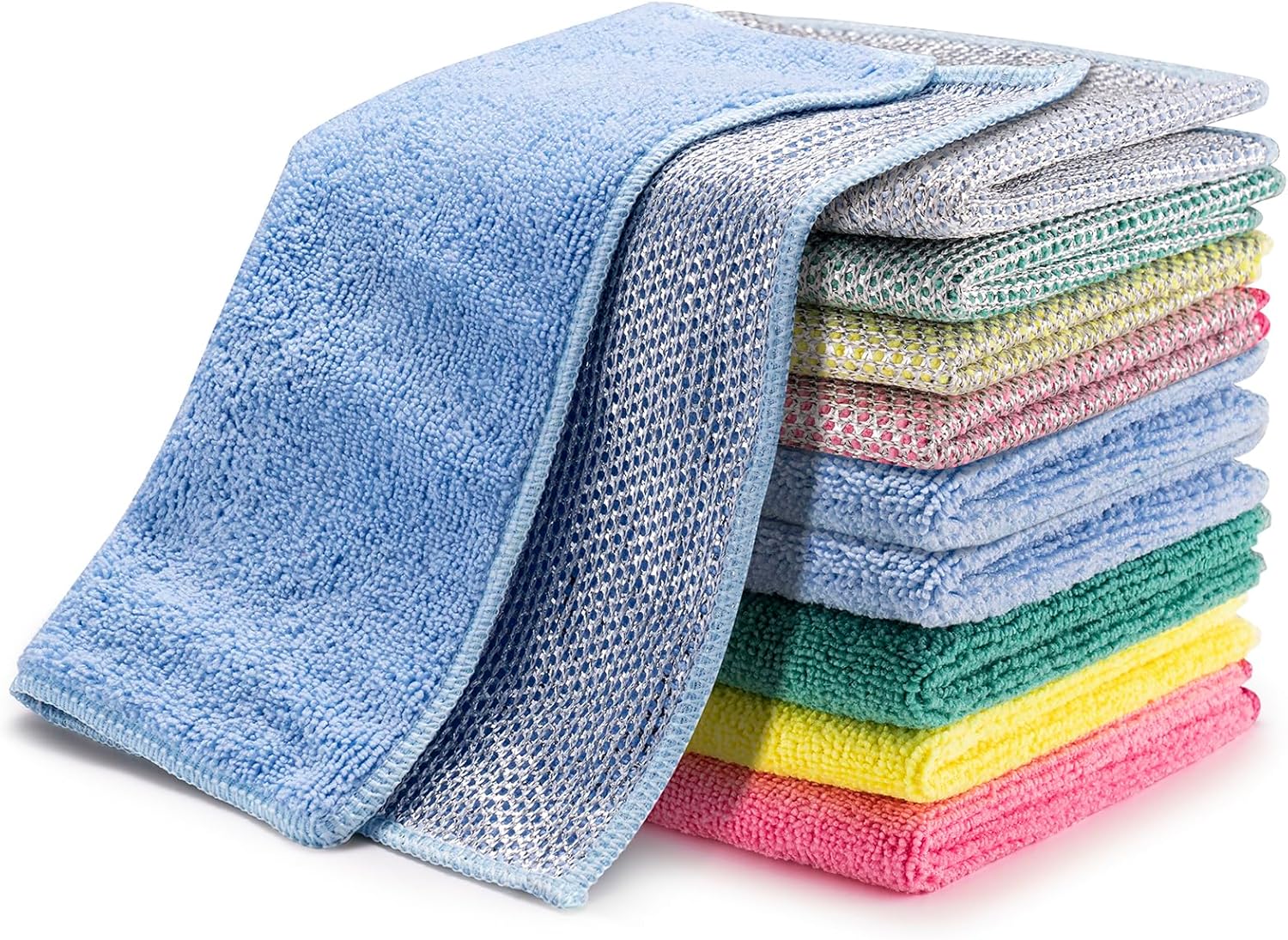 - Dimensions: 10" X 10", 10 Pack, Multiple colors. This cleaning towels is a capable assistant for your home and kitchen. If you are not 100% satisfied, contact us directly and we will provide you with a No-Questions-Asked replacement or refund.