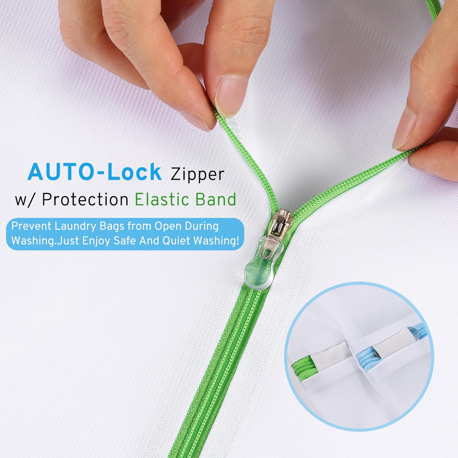 - Superior Zipper Design: Our laundry wash bags feature a premium, rust-resistant, smooth zipper with AUTO-Lock and an extra protective elastic band, ensuring the contents remain securely enclosed throughout the washing and drying cycle. Unlike other plastic zippers, our design offers a quieter and snag-free laundry experience